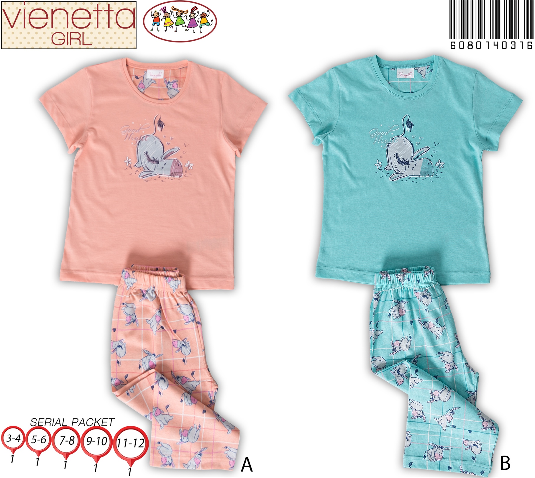 KIZ COCUK IKI IPLIK O YAKA UZUN KOL PIJAMA TAKIM 6051244103 B A/ 1-1-1-1 5,70 $ 6,00 136,80 $