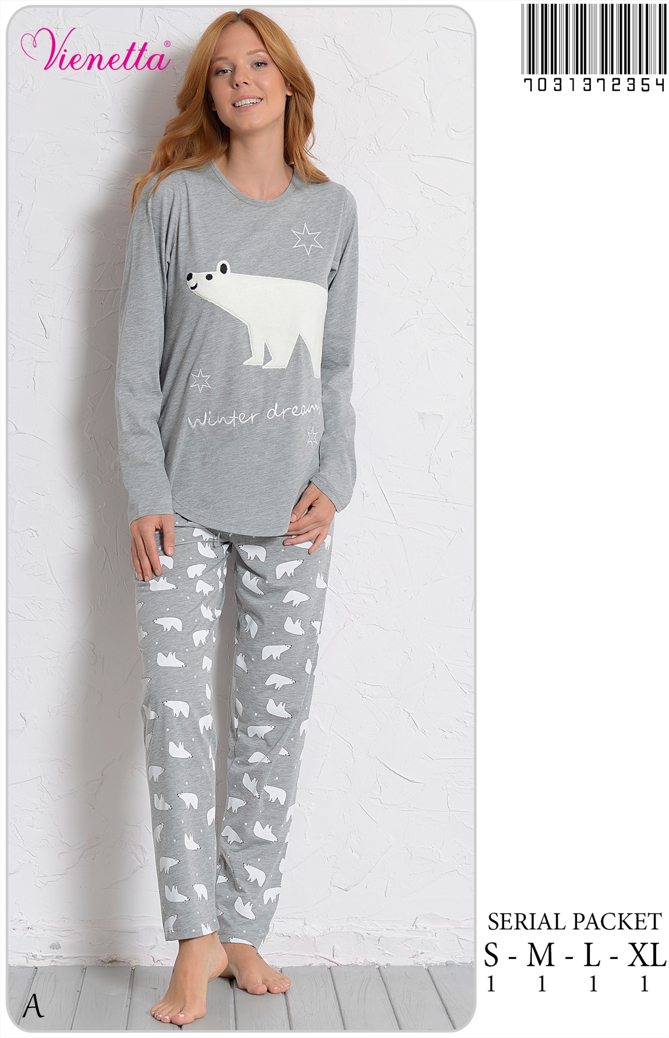 KADIN GREY SOFT BEAR UZUN KOL ETEGI KAVISLI PIJAMA TK |