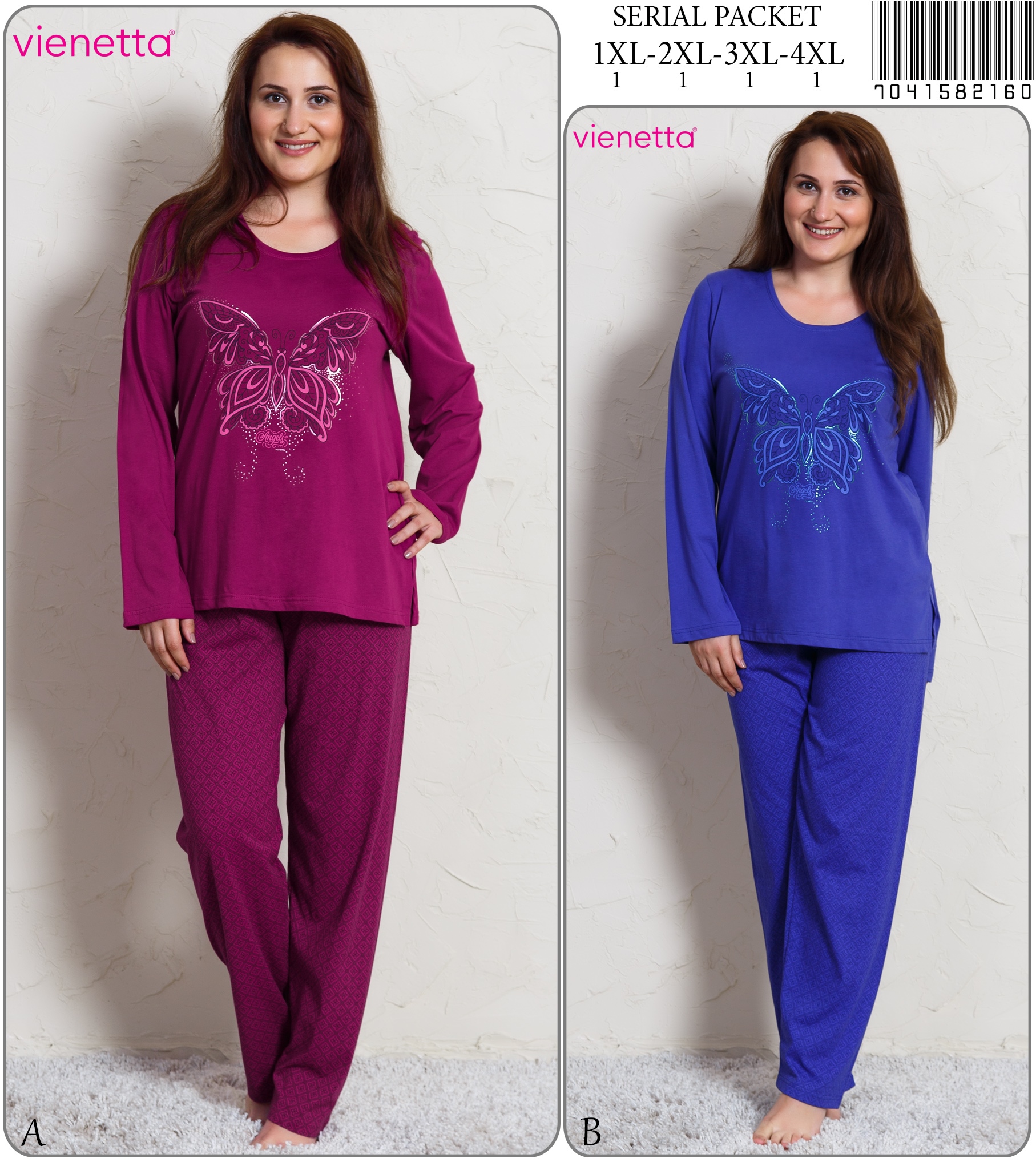 VIENETTA PLUS KADIN VISCON YARASA KOLLU TAKMA KEMERLI CEPLI PIJAMA TAKIM |