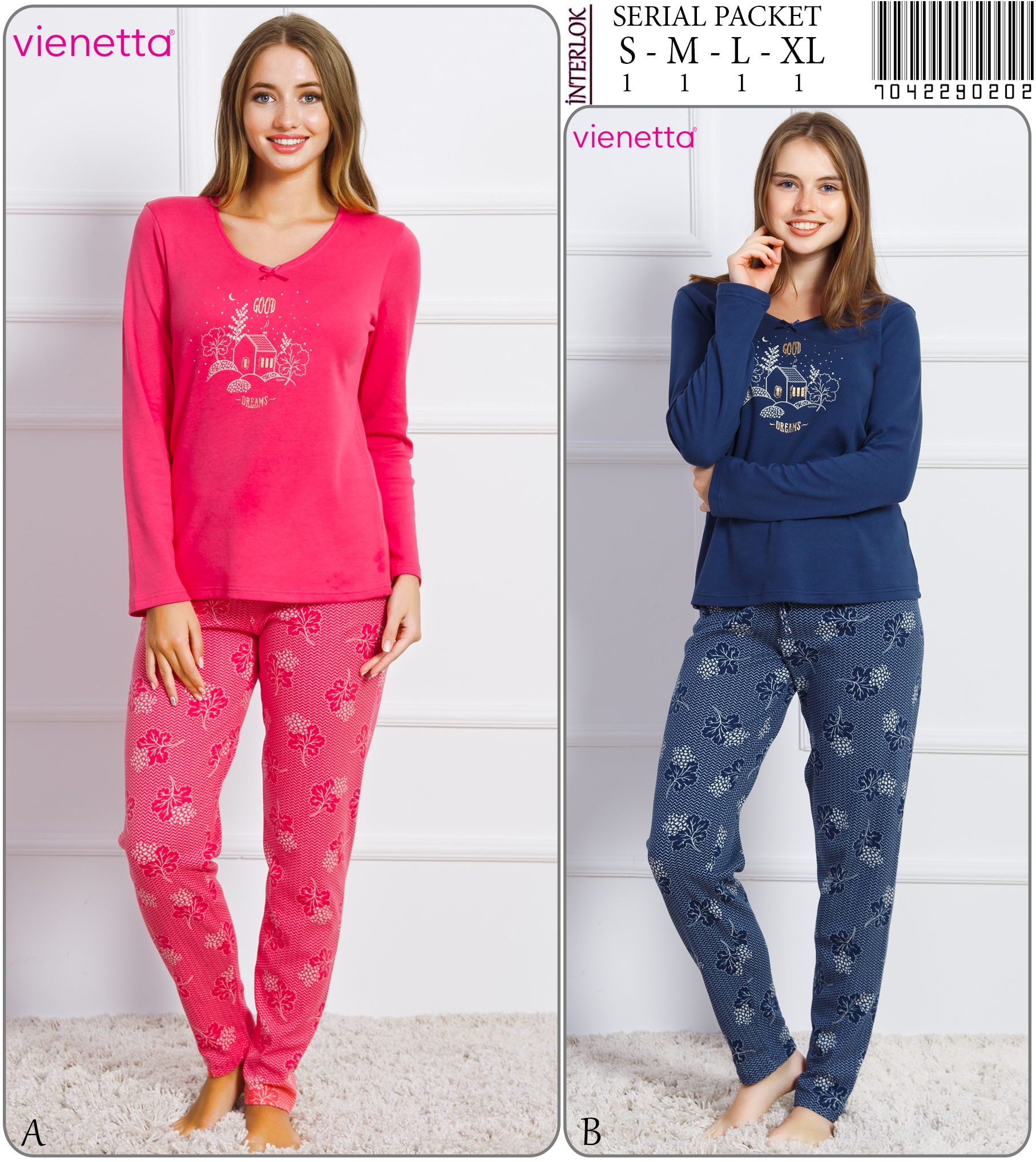 KEZOKINO KADIN INTERLOK V YAKA FIYONKLU PIJAMA TAKIM |