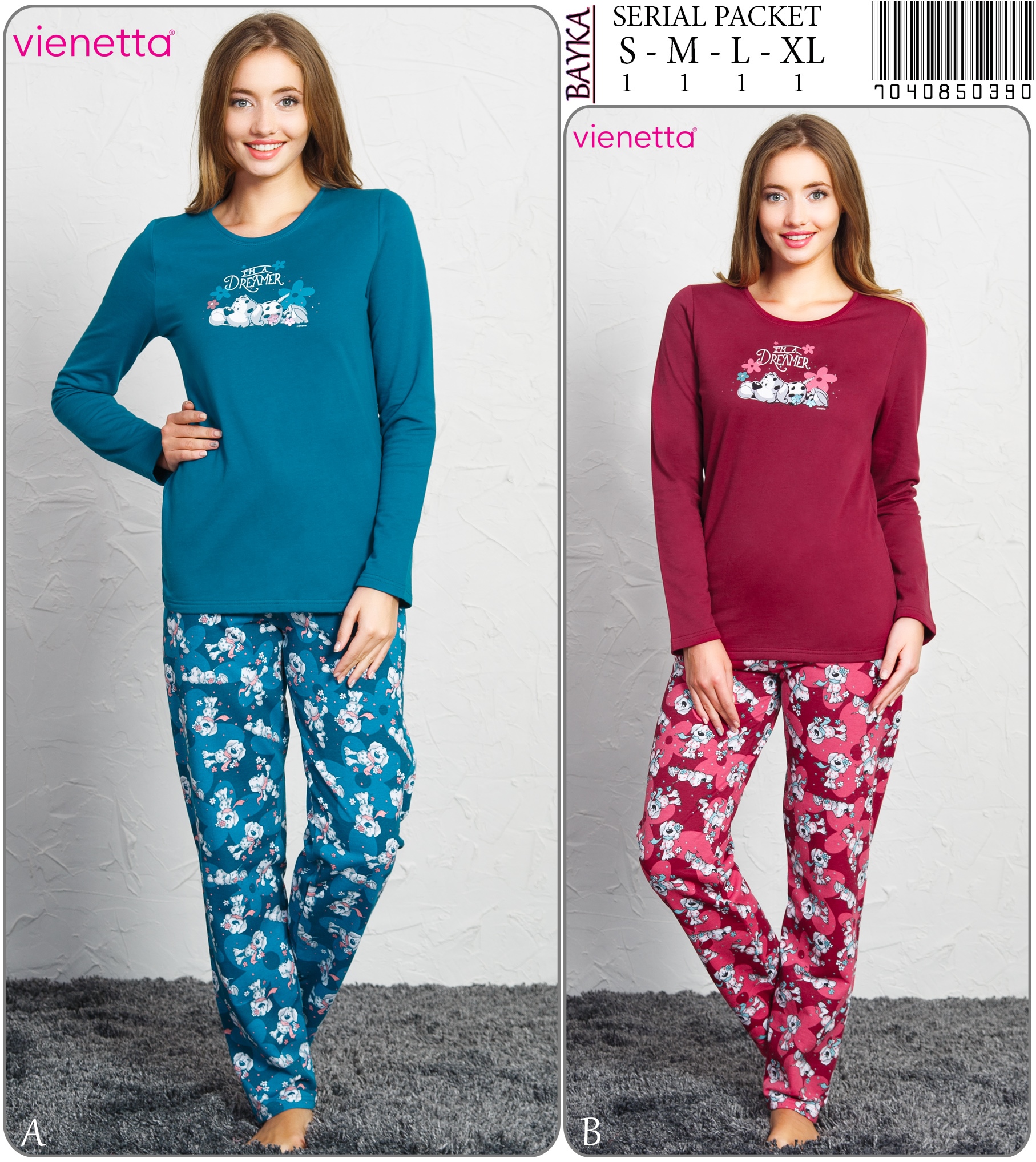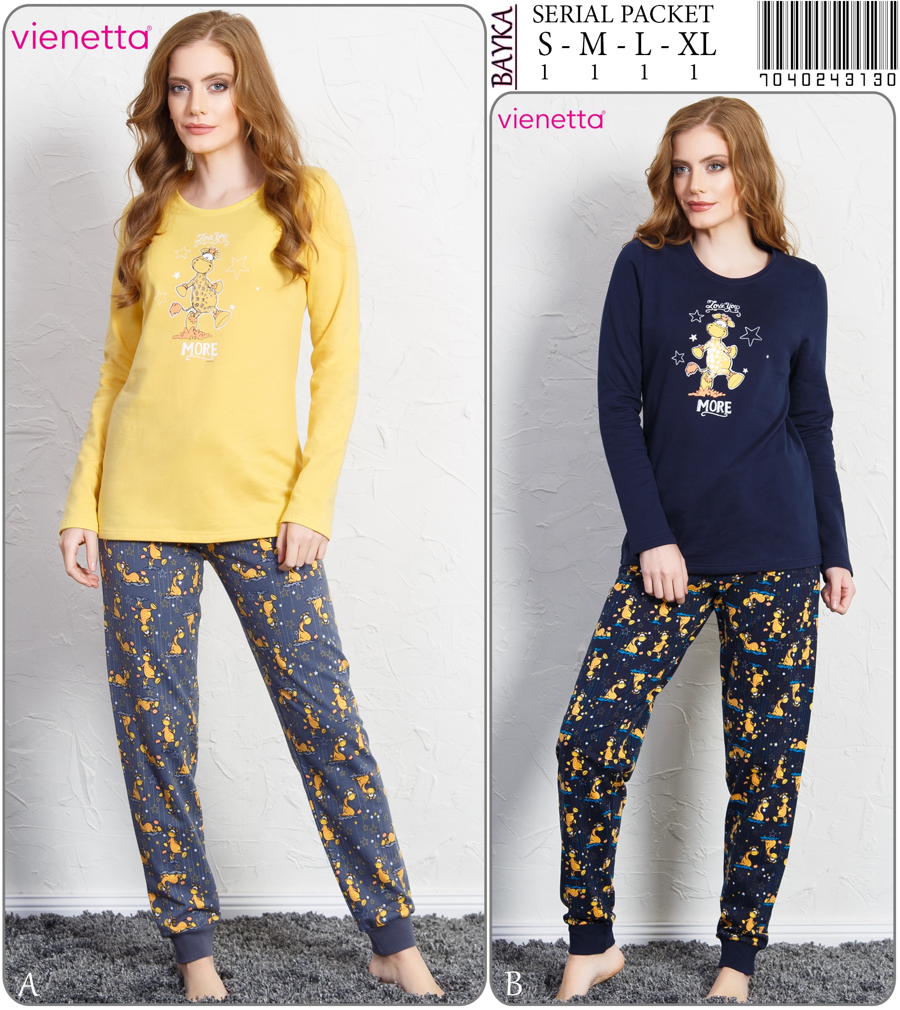 KADIN P.SUPREM O YAKA U KOL DAR PACA PIJAMA TAKIM 7050981633 B A/ 1-1-1-1 6,50 $ 4,00 104,00 $