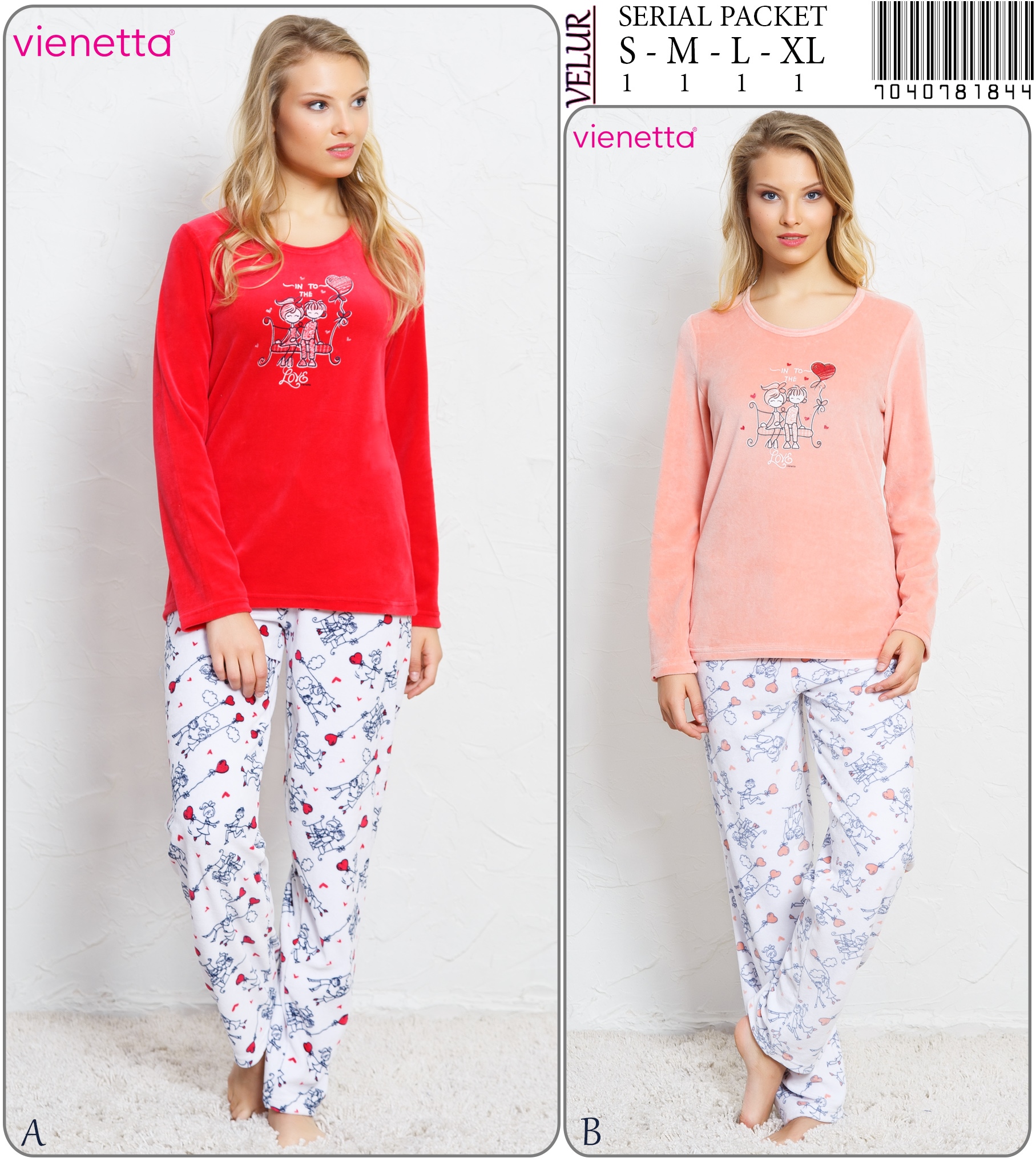 KADIN KADIFE O YAKA U.KOL PİJAMA TAKIM 7031590099 B A/ 1-1-1-1 11,30 $ 2,00 90,40 $
