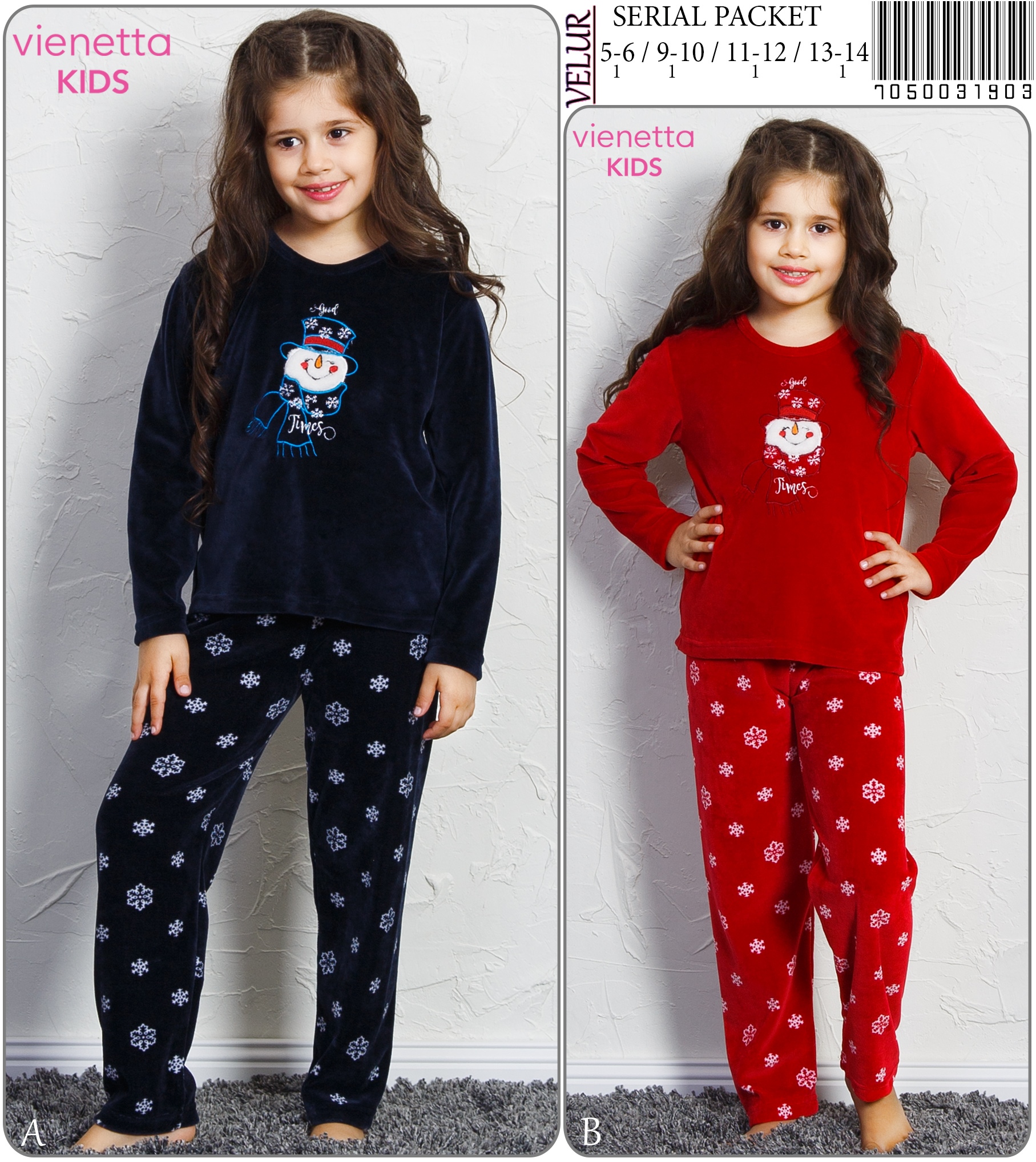 KADIFE KIZ COCUK O YAKA PIJAMA TAKIM 7050031903 B A/ 1-1-1-1-1 7,90 $ 20,00 790,00 $