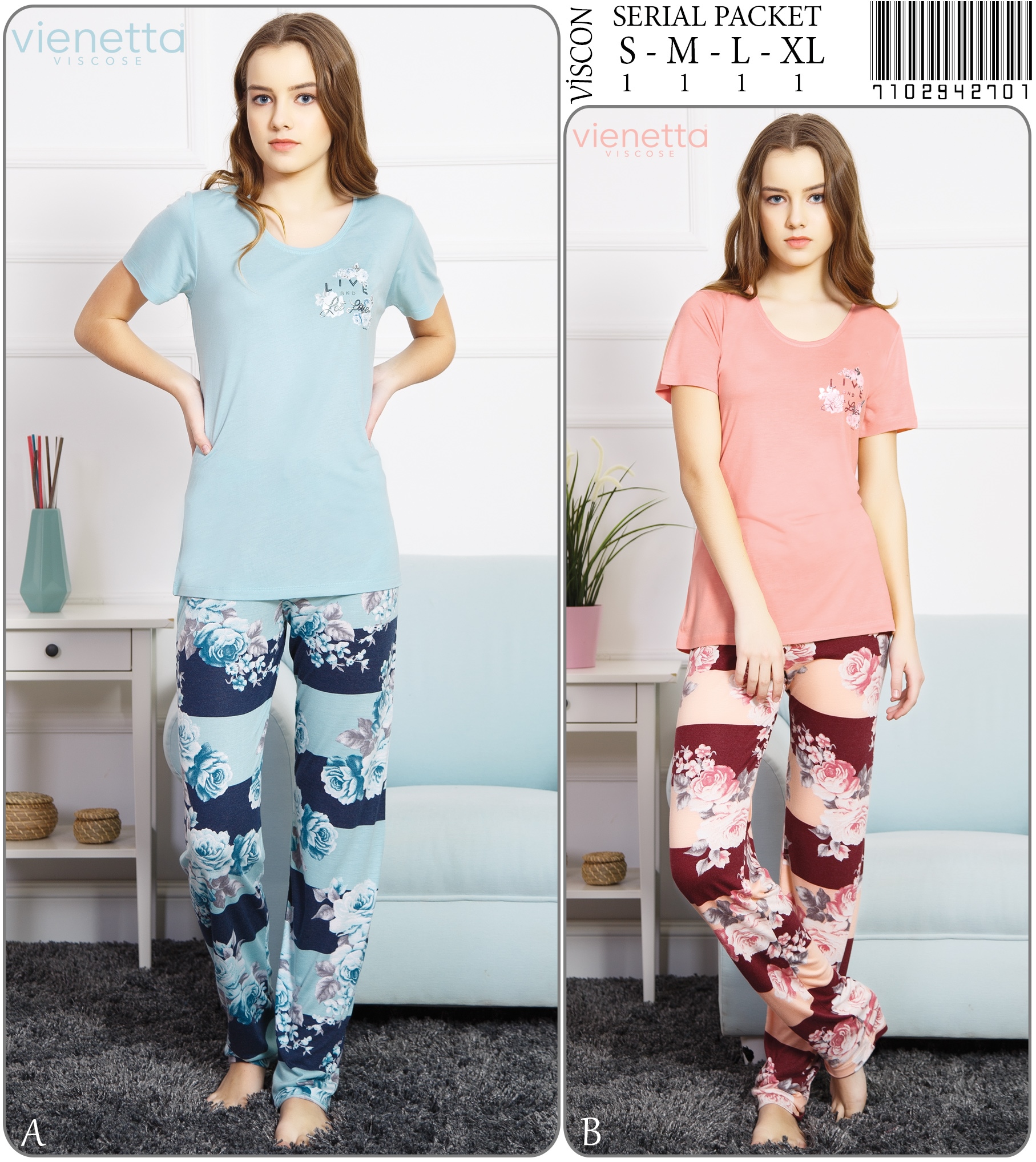 KADIN VISCON O YAKA FIYONKLU KISA KOL PIJAMA TAKIM 7102942701 A A/ 1-1-1-1 7,20 $ 2,00 57,60 $