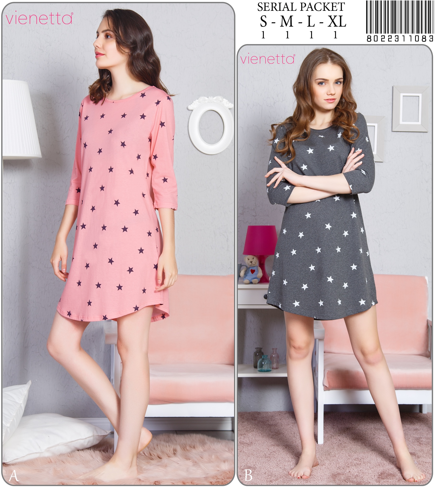 KADIN P.SUPREM O YAKA 3/4 KOL ETEGI OVAL TUNIK 8022311083 B A/ 1-1-1-1 3,40 $ 30,00 408,00 $