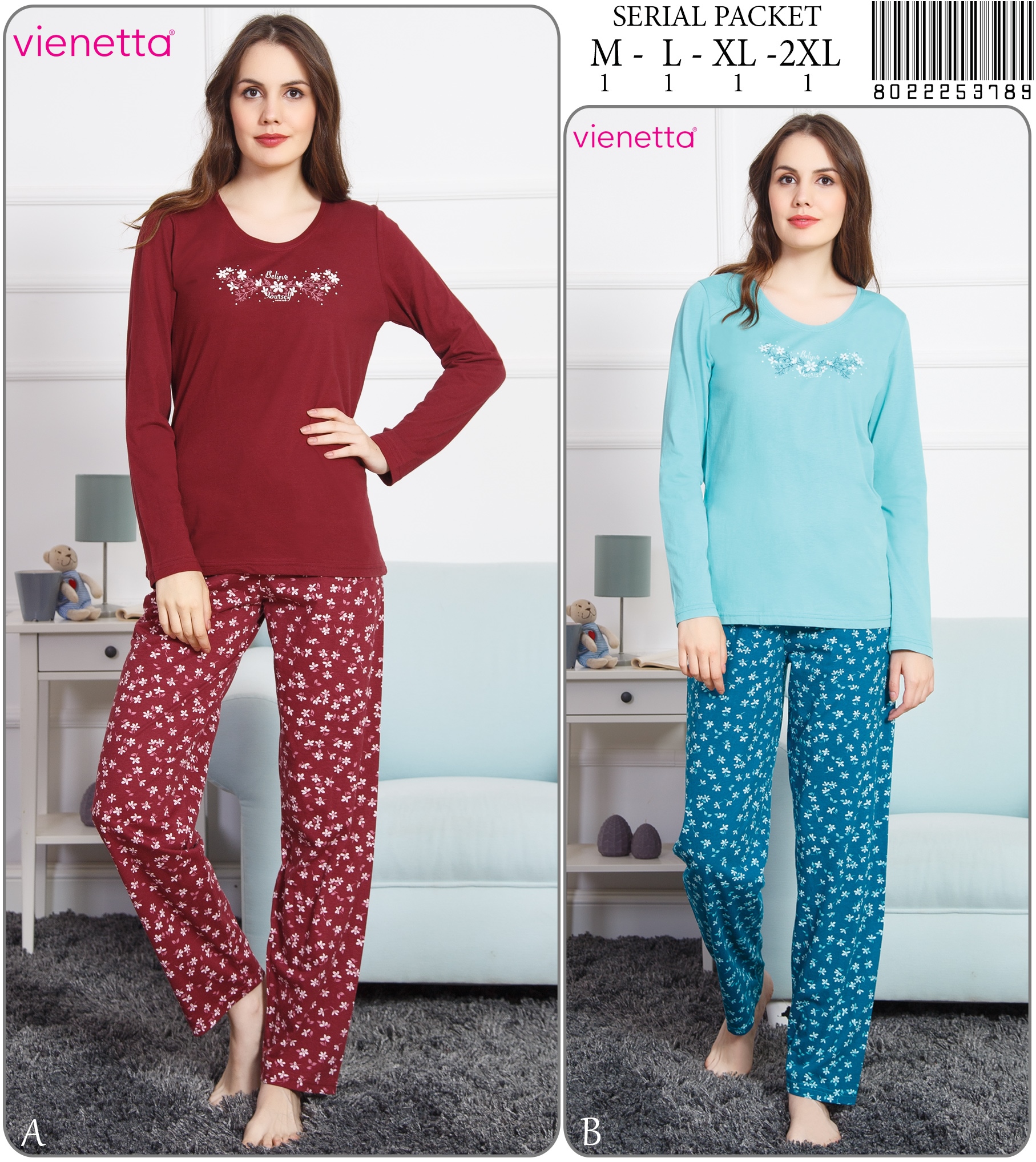 KADIN P.SUPREM O YAKA U KOL PIJAMA TAKIM |