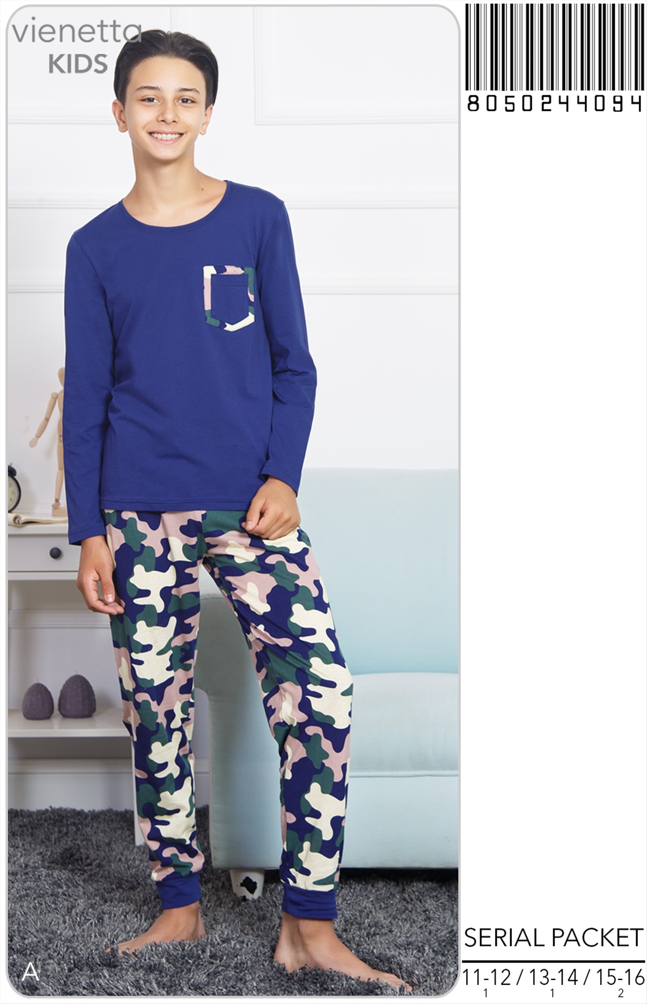 ERKEK COCUK P.SUPREM O YAKA U KOL GOGUSU CEPLI PACASI MANSETLI PIJAMA TAKIM |