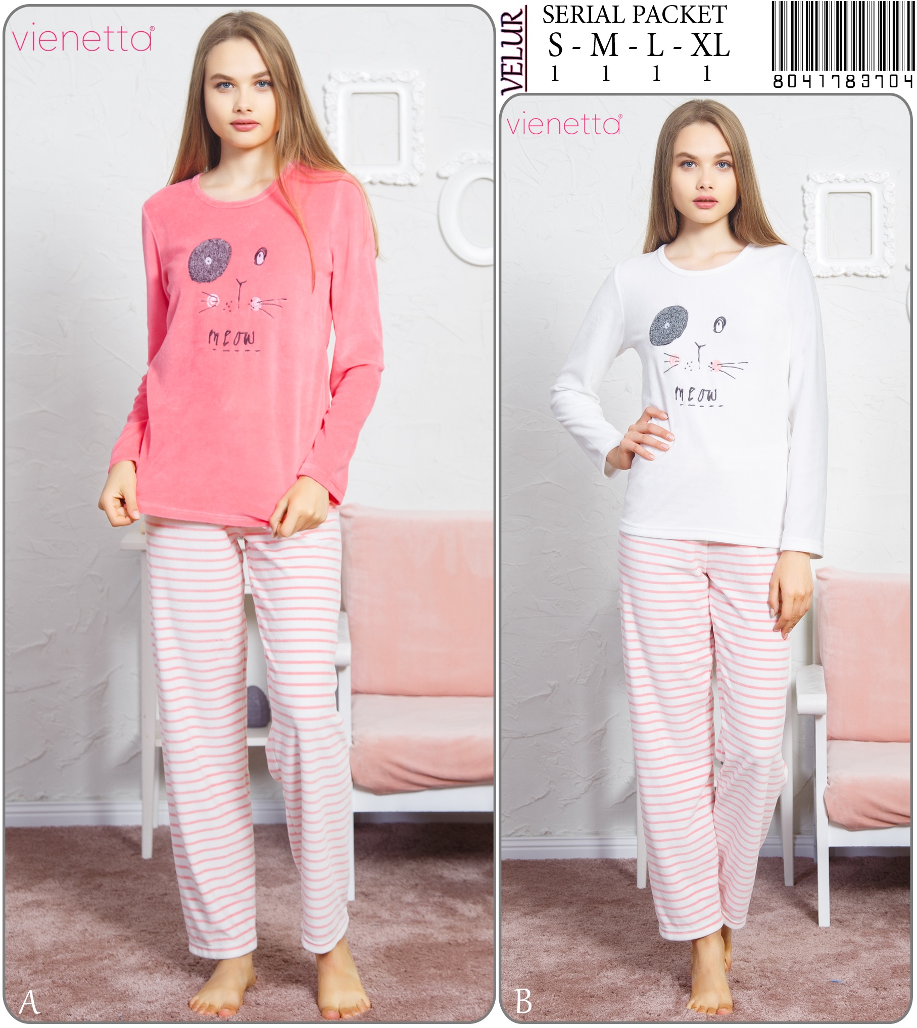BAYAN KADIFE O YAKA U KOL PIJAMA TAKIM 8041783704 A A/ 1-1-1-1 10,90 $ 3,00 130,80 $