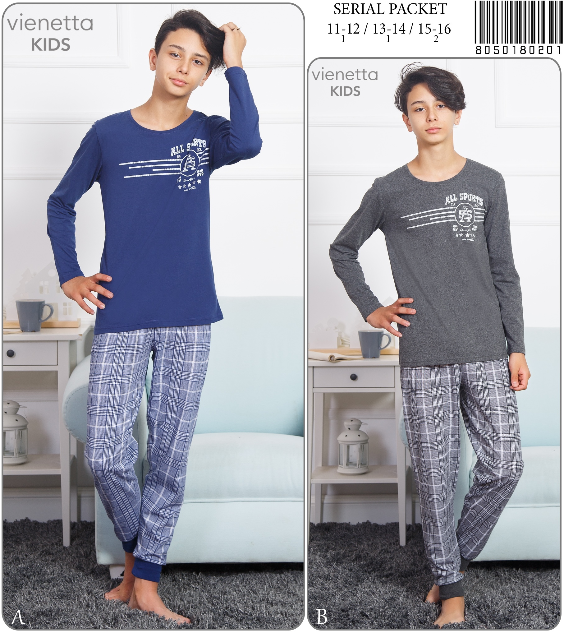 ERKEK COCUK P.SUPREM O YAKA U KOL PACASI MANSETLI PIJAMA TK