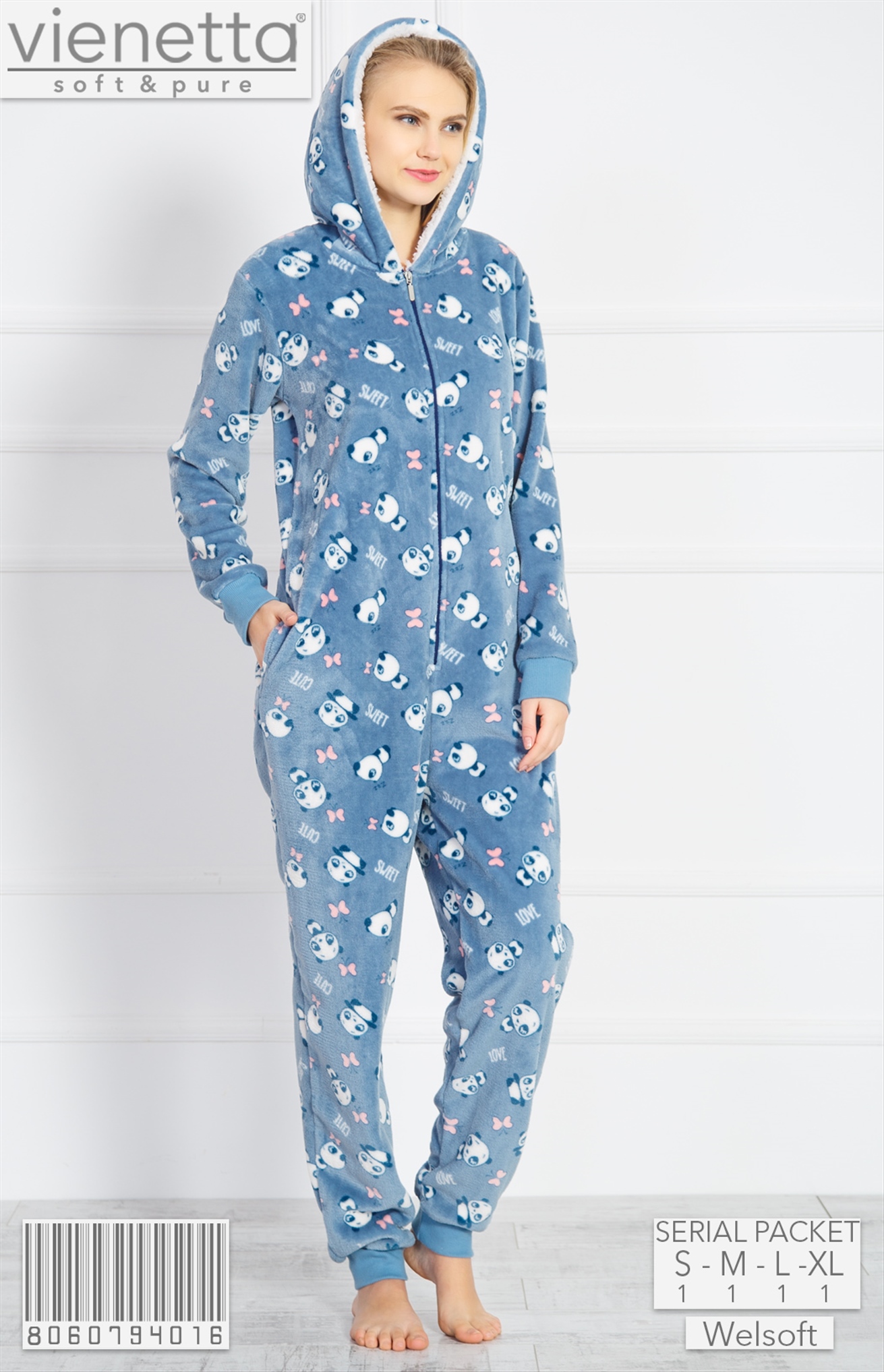BAYAN SPANDEX VELVET O YAKA U KOL MANSETLI KANGURU CEPLI PIJAMA TAKIM 8060584008 A A/ 1-1-1-1 13,00 $ 2,00 104,00 $