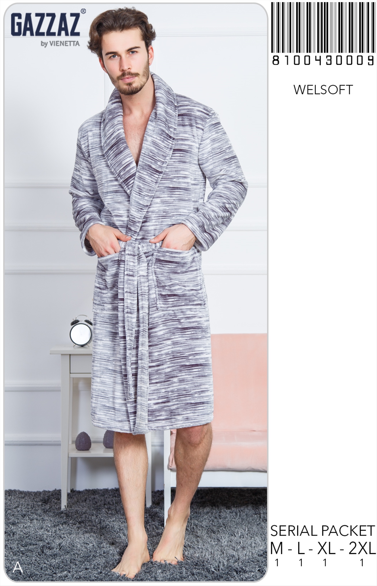 CEPLI ERKEK WELSOFT PRINTING&CUTTING SAL YAKALI UZUN SABAHLIK 8100430009 A A/ 1-1-1-1 13,00 $ 5,00 260,00 $