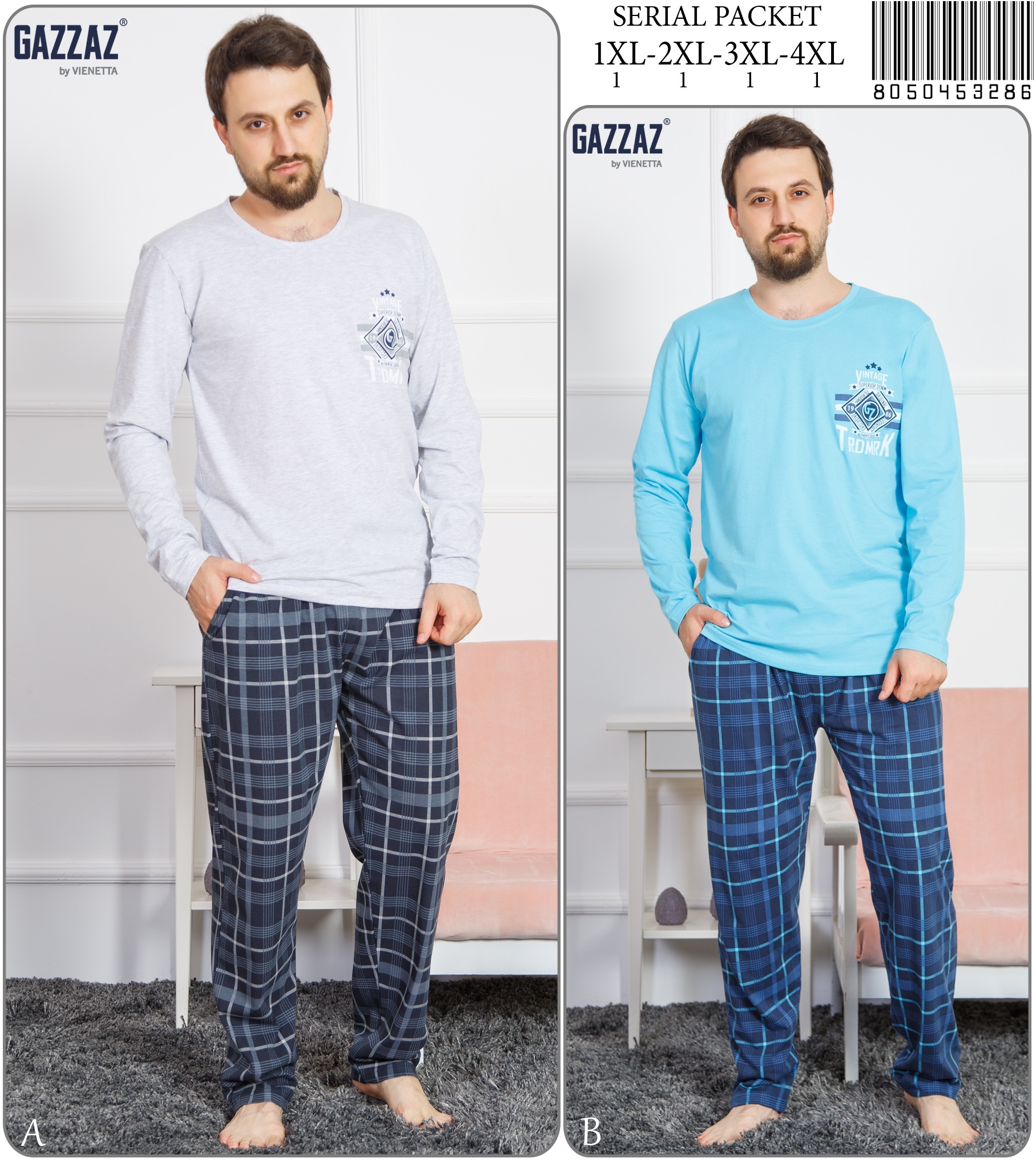 CEPLI ERKEK P.SUPREM XXL O YAKA U KOL PIJAMA TAKIM |