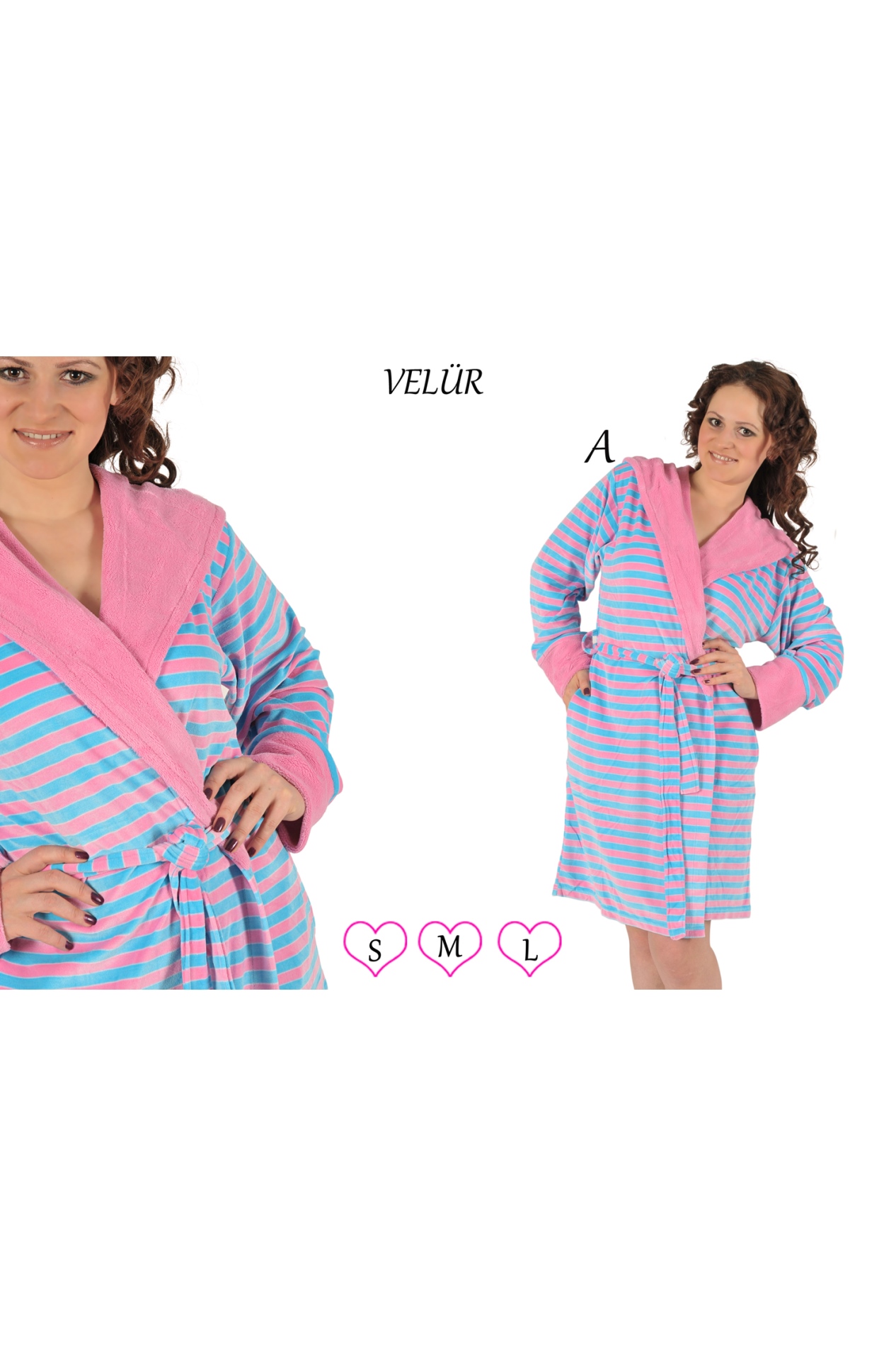BAYAN ÇİZGİLİ KADİFE ÇİFT CEPLİ KAPŞON VE MANŞET İÇİ GARNİLİ SABAHLIK 1190791888 A A/ 1 10,00 $ 2,00 20,00 $