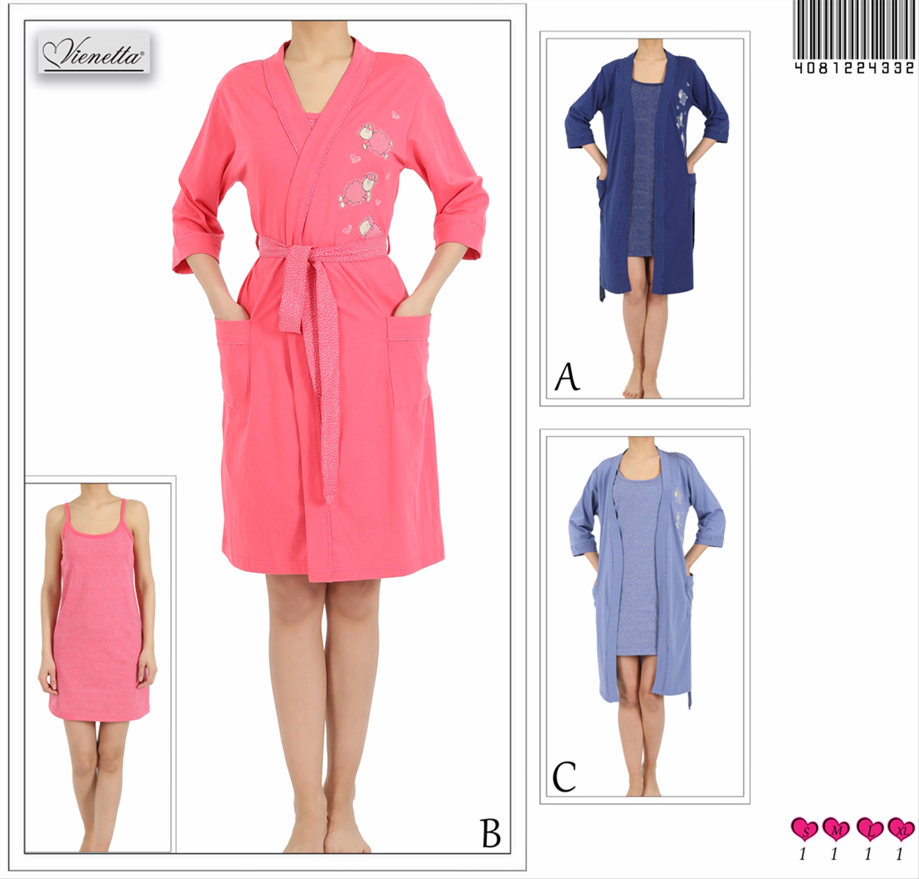 BAYAN P SÜPREM İP ASKILI 3/4 TAKMA KOL SABAHLIK TAKIMI 4100034624 A A/ 1-1-1-1 8,10 $ 5,00 162,00 $