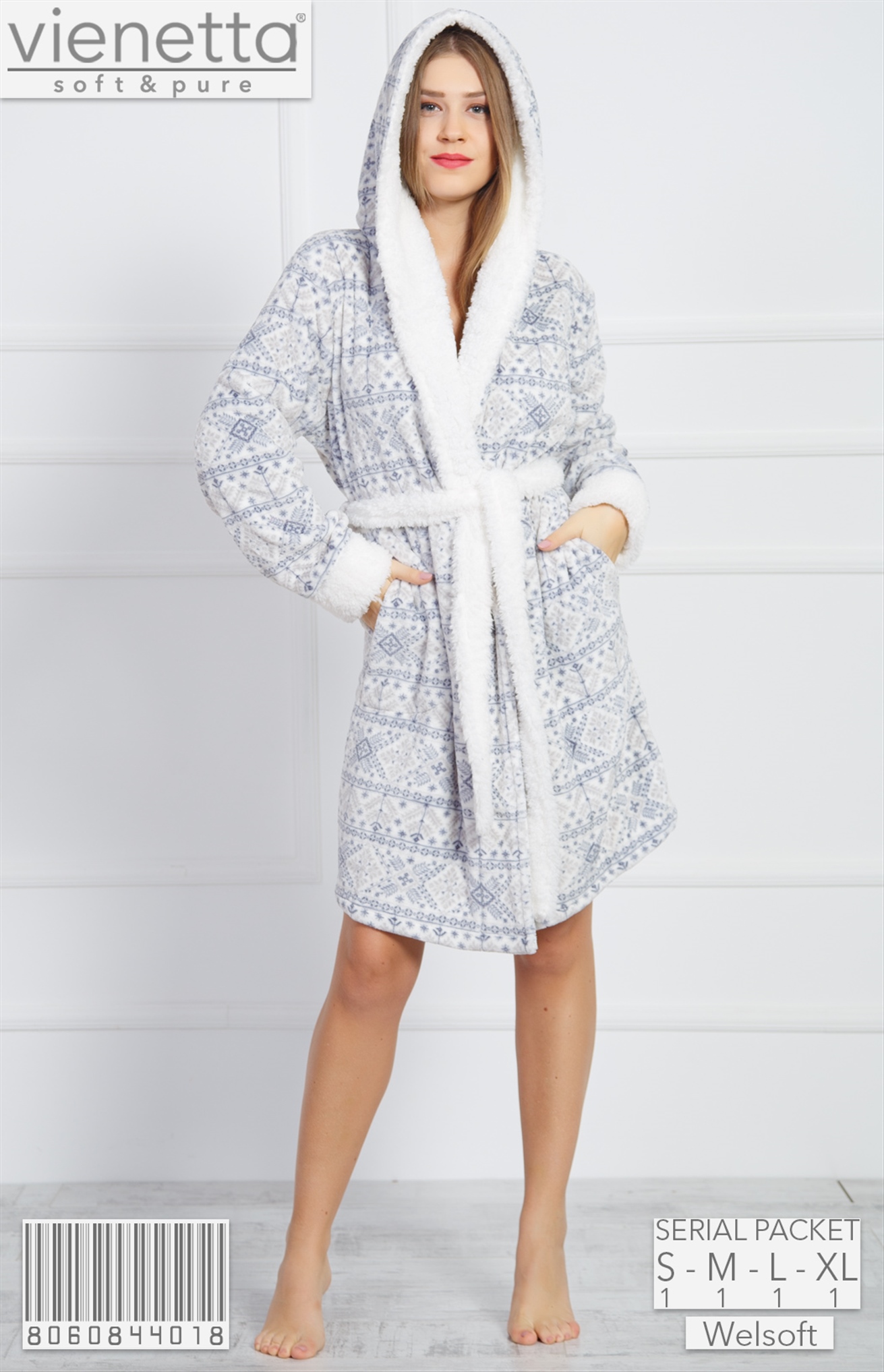 BAYAN FLANNEL VELSOFT FOIL PRINT KAPSONLU KISA SABAHLIK |