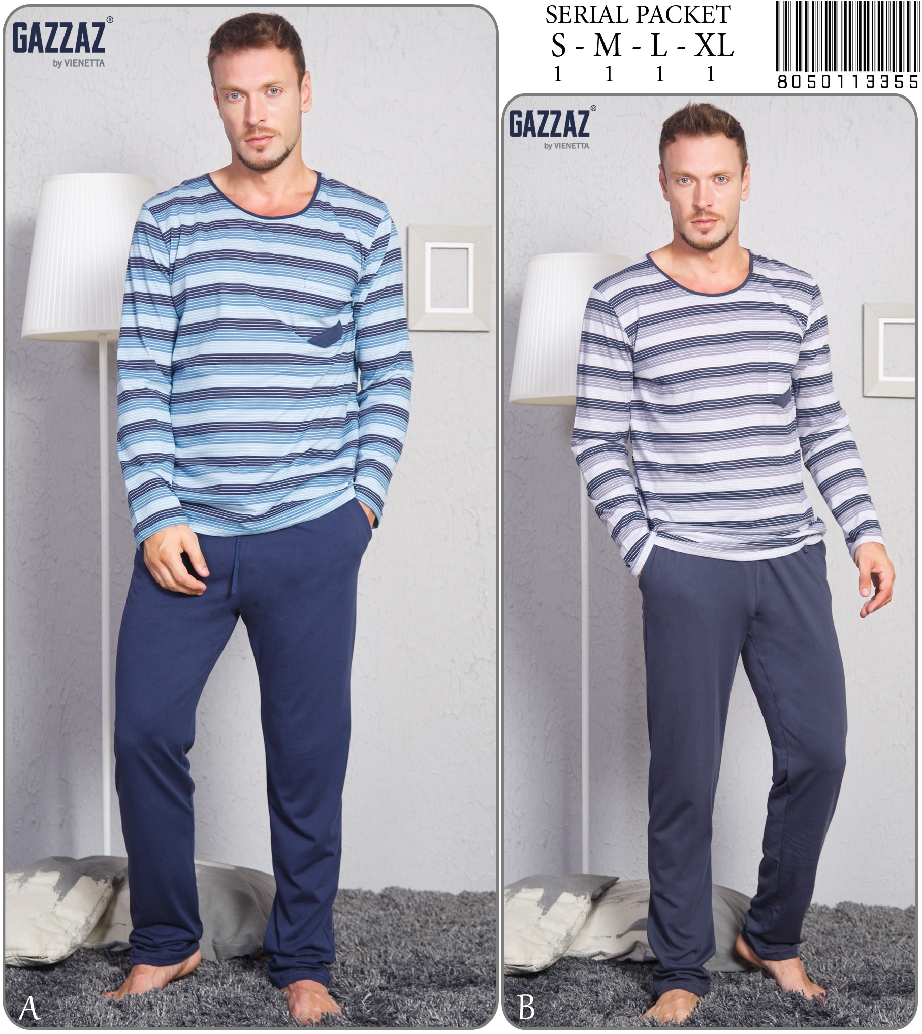 CEPLI ERKEK P.SUPREM O YAKA UZUN KOL DAR PACA PIJAMA TAKIM 9050301059 B A/ 1-1-1-1 8,10 $ 5,00 162,00 $