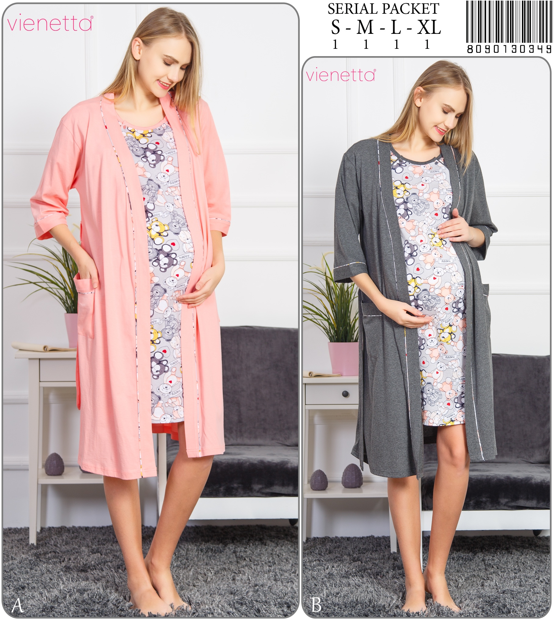 BAYAN V YAKA DANTELLI FIYONKLU HAMILE GOGUSU YIRTMACLI PIJAMA TAKIIM 9050480000 A B/ 1-1-1-1 6,70 $ 5,00 134,00 $