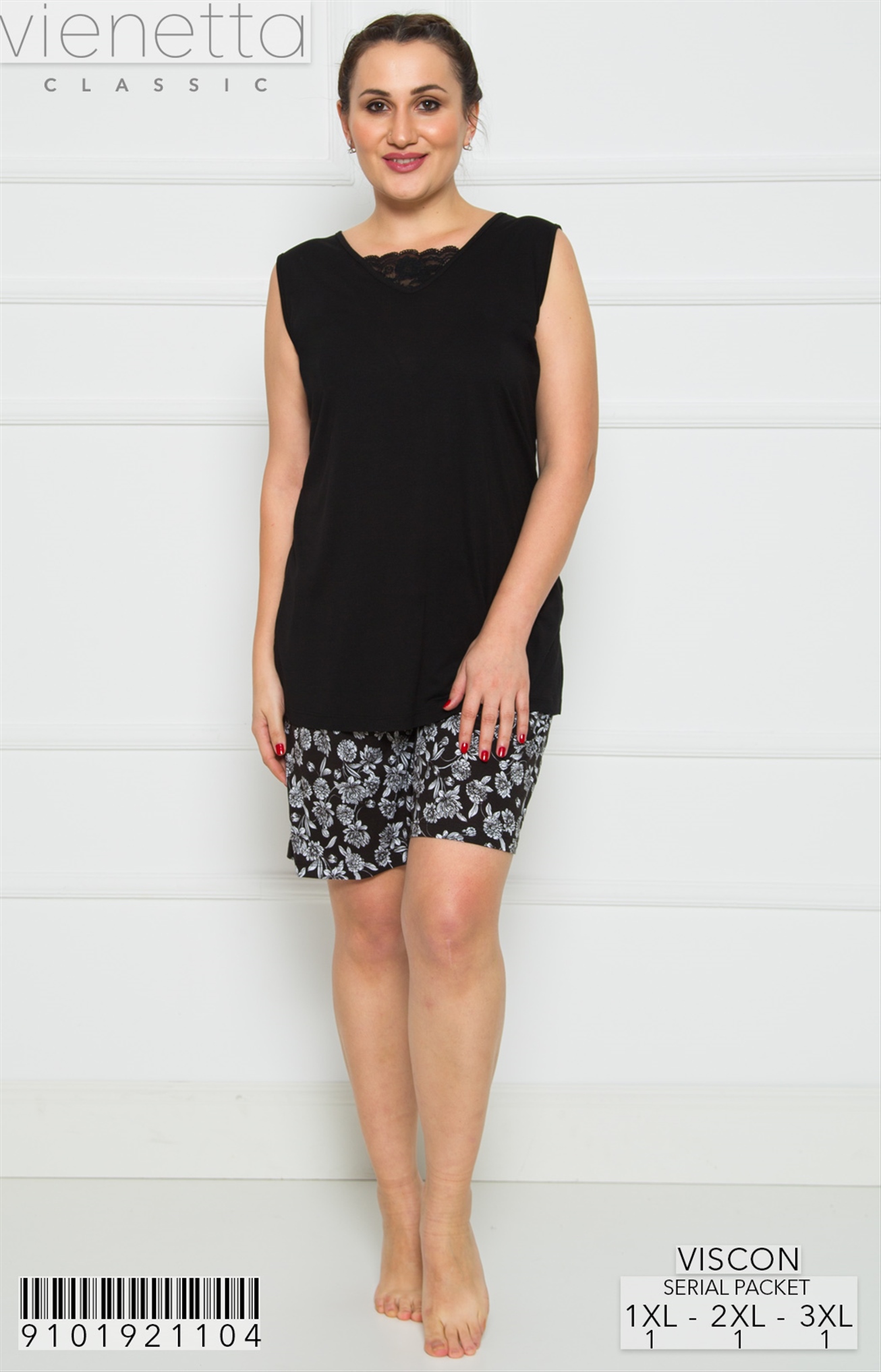 BAYAN VISCON XXL V YAKA KOLSUZ DANTELLI SORT TAKIM |