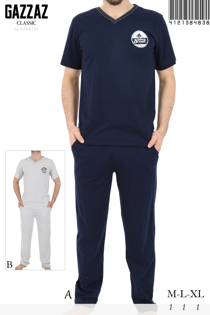 ERKEK P.SÜPREM V YAKA KISA KOL UZUN PAÇA PİJAMA TK(ÜST ROTASYON ALT DÜZ) |