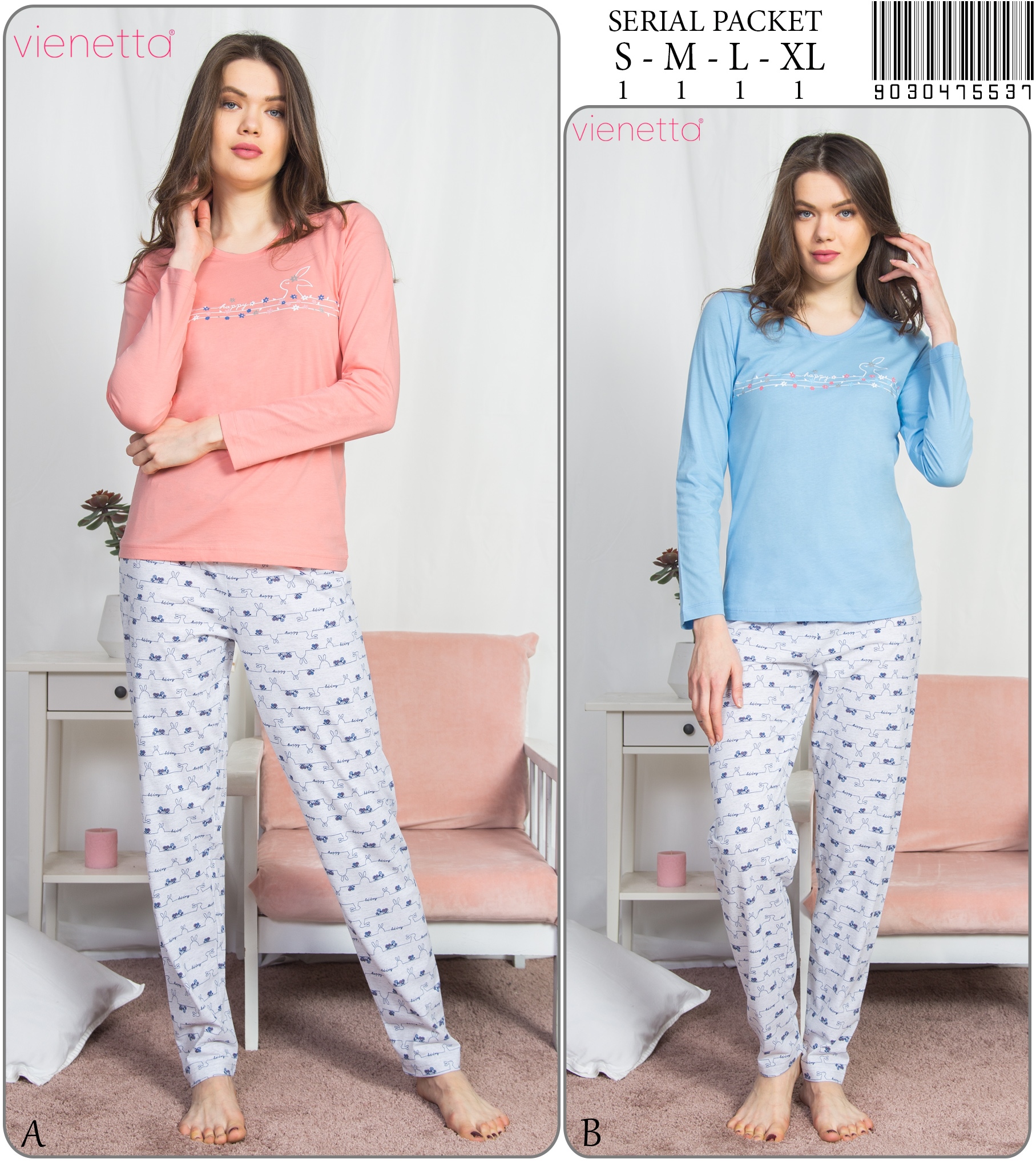 KADIN 2IPLIK O YAKA U KOL PIJAMA TAKIM |