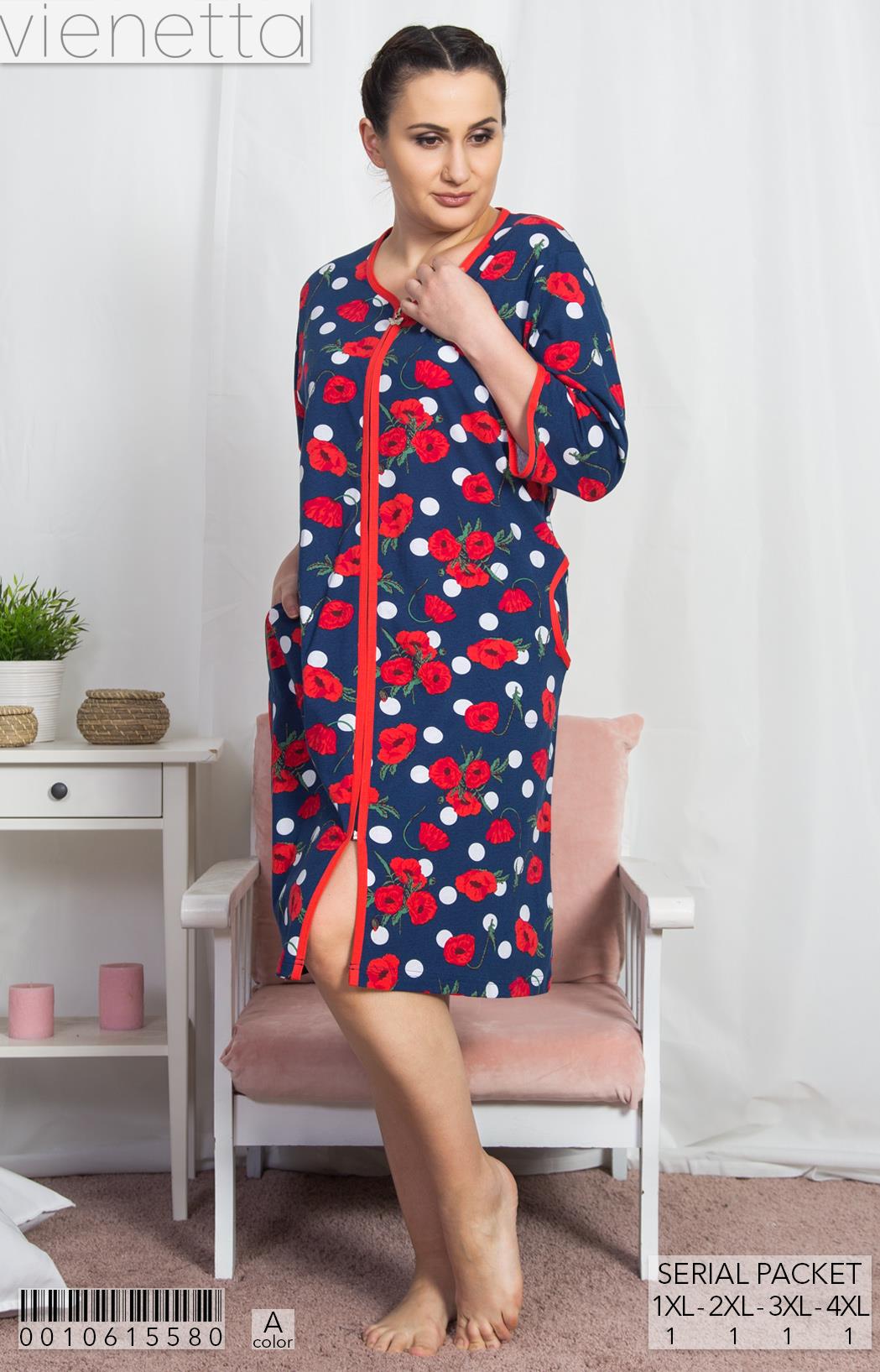 BAYAN P.SUPREM XXL 3/4 KOL FERMUARLI CEPLI EV ELBISESI |
