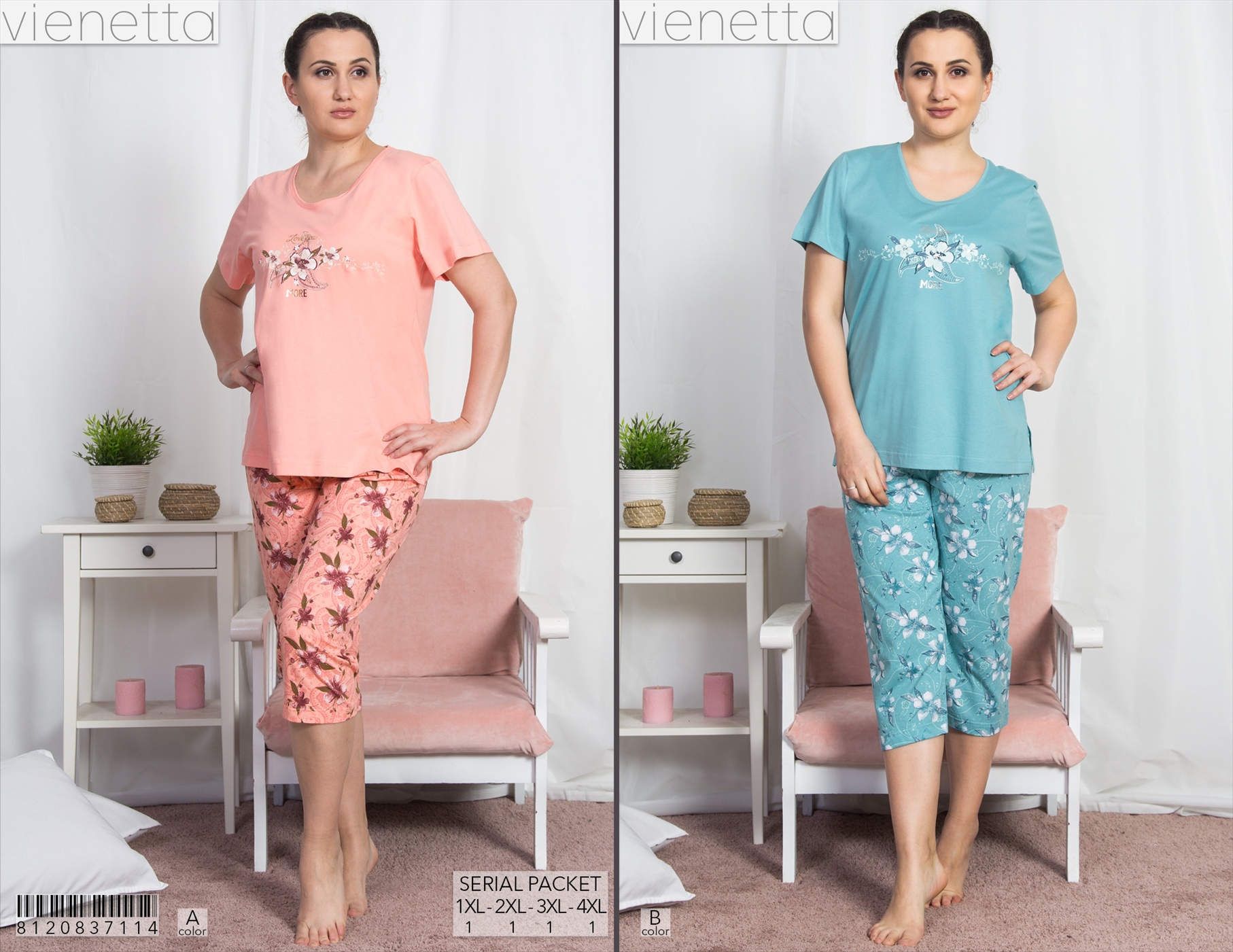 BAYAN VISCON O YAKA KISA KOL PIJAMA TAKIM |
