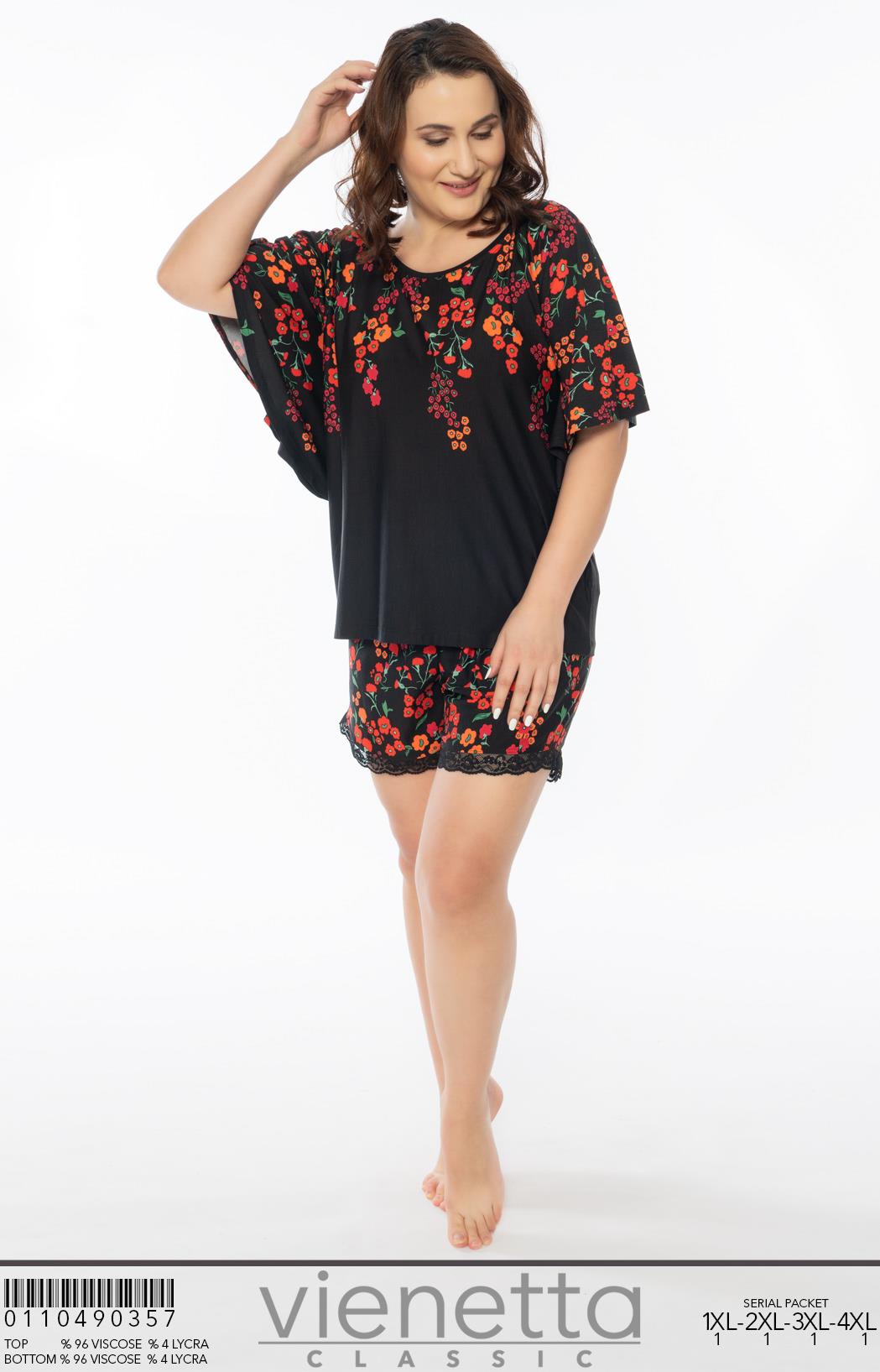 BAYAN LYC WORTEKS PATLI DUSUK OMUZLU KISA KOL DANTELLI ETEGI OVAL BOL PACA PIJAMA TAKIM |