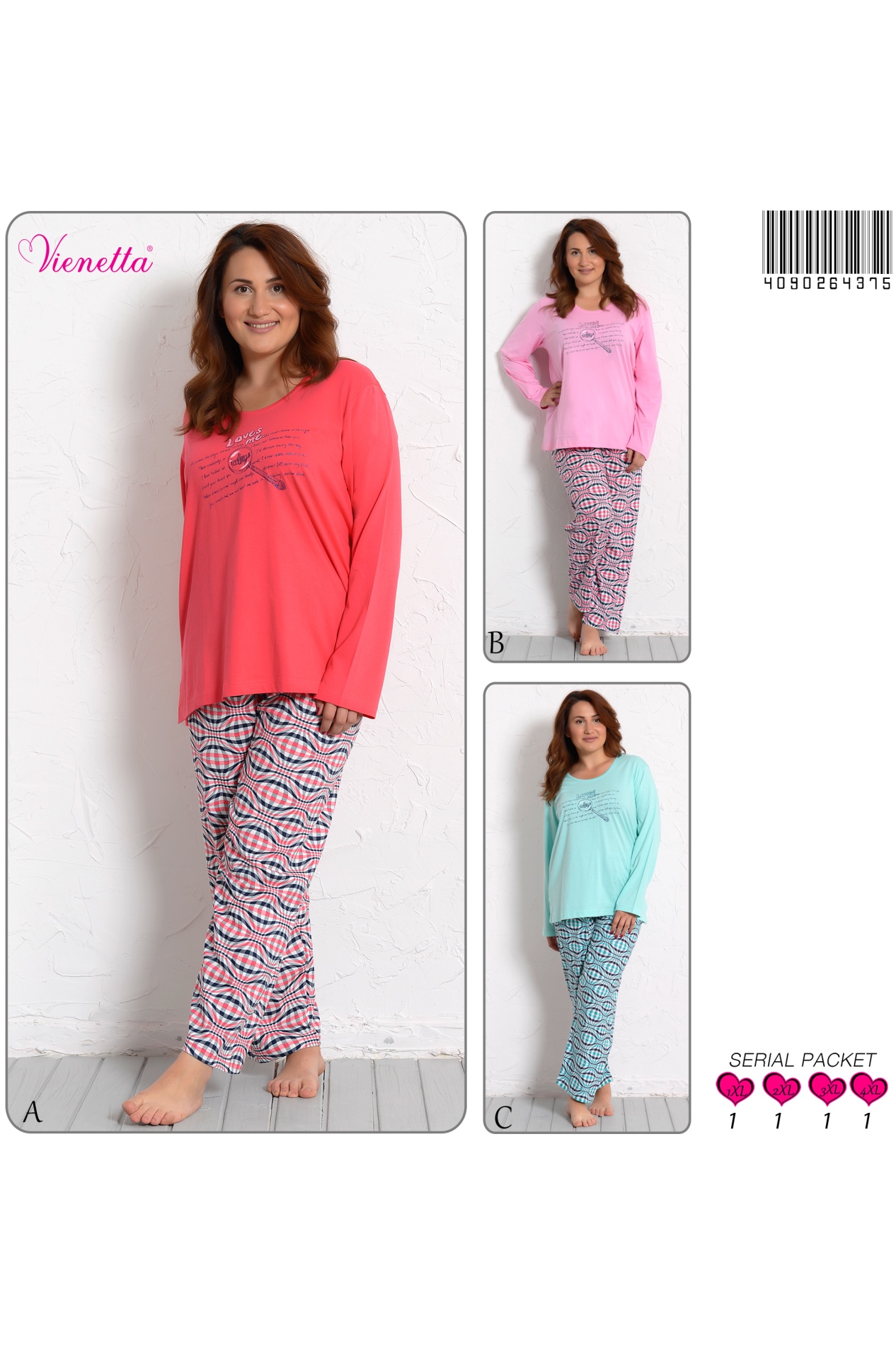 BAYAN P.SÜPREM XL'Lİ O YAKA PİJAMA TK 4090264375 A A/ 1-1-1-1 7,20 $ 6,00 172,80 $
