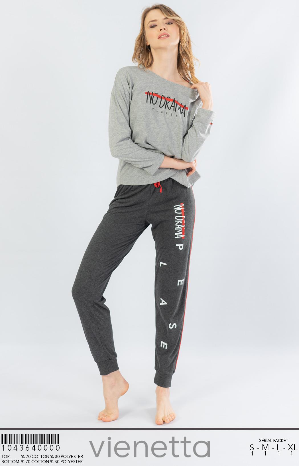 BAYAN P.SUPREM KAYIK YAKA DUSUK OMUZLU UZUN KOL ETEGI OVAL PIJAMA TAKIM |