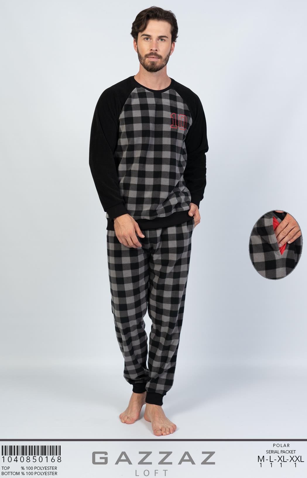CEPLI ERKEK LOFT POLAR O YAKA REGLAN UZUN KOL MANSETLI PIJAMA TAKIM |