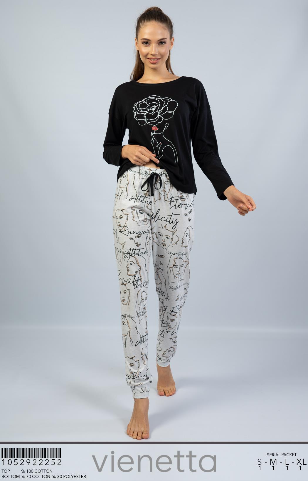 BAYAN P.SUPREM O YAKA UZUN KOL ETEGI OVAL DAR PACA PIJAMA TK |
