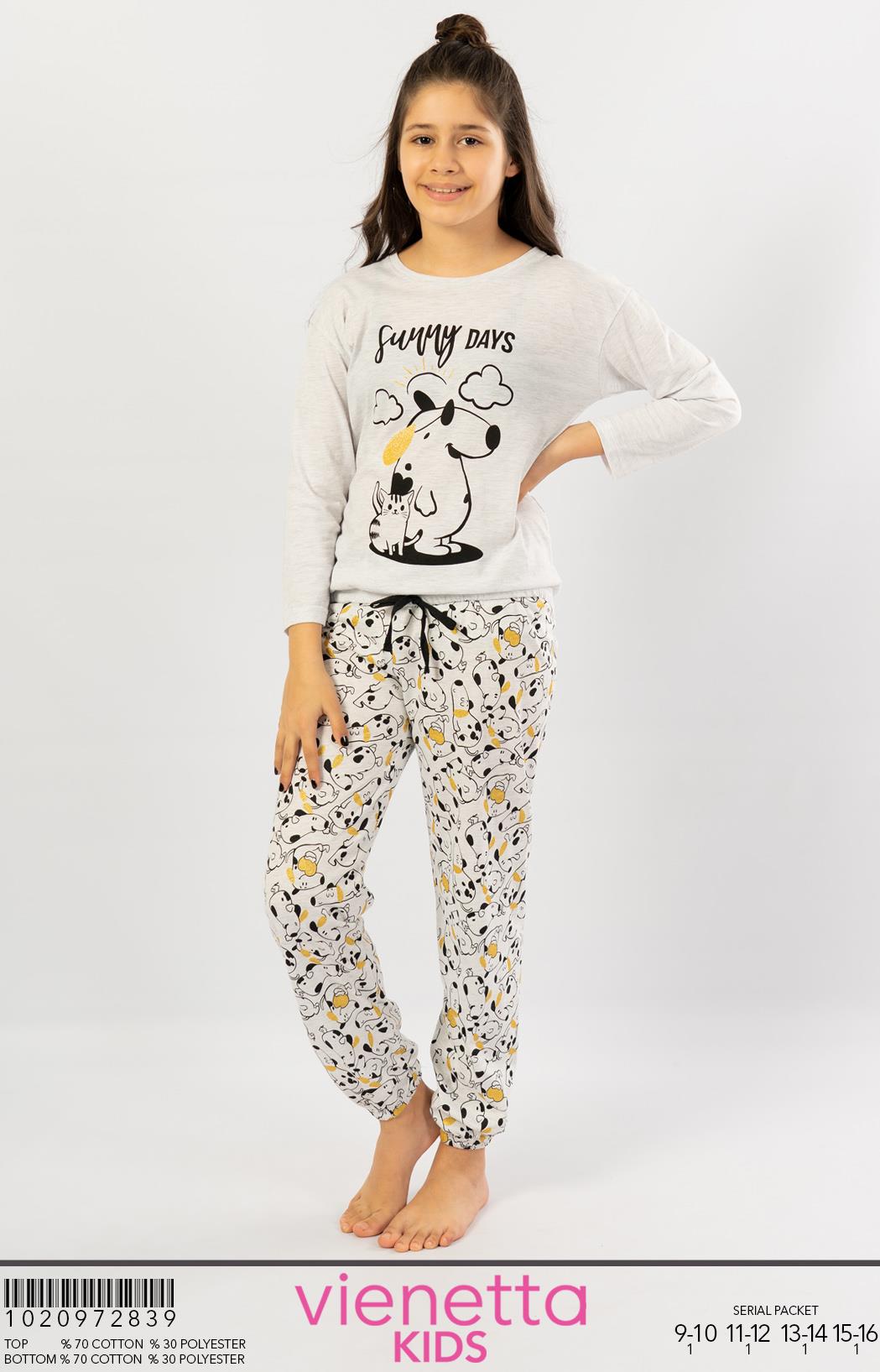 KIZ COCUK P.SUPREM O YAKA DUSUK OMUZLU UZUN KOL BELI PACASI BUZGULU PIJAMA TAKIM |