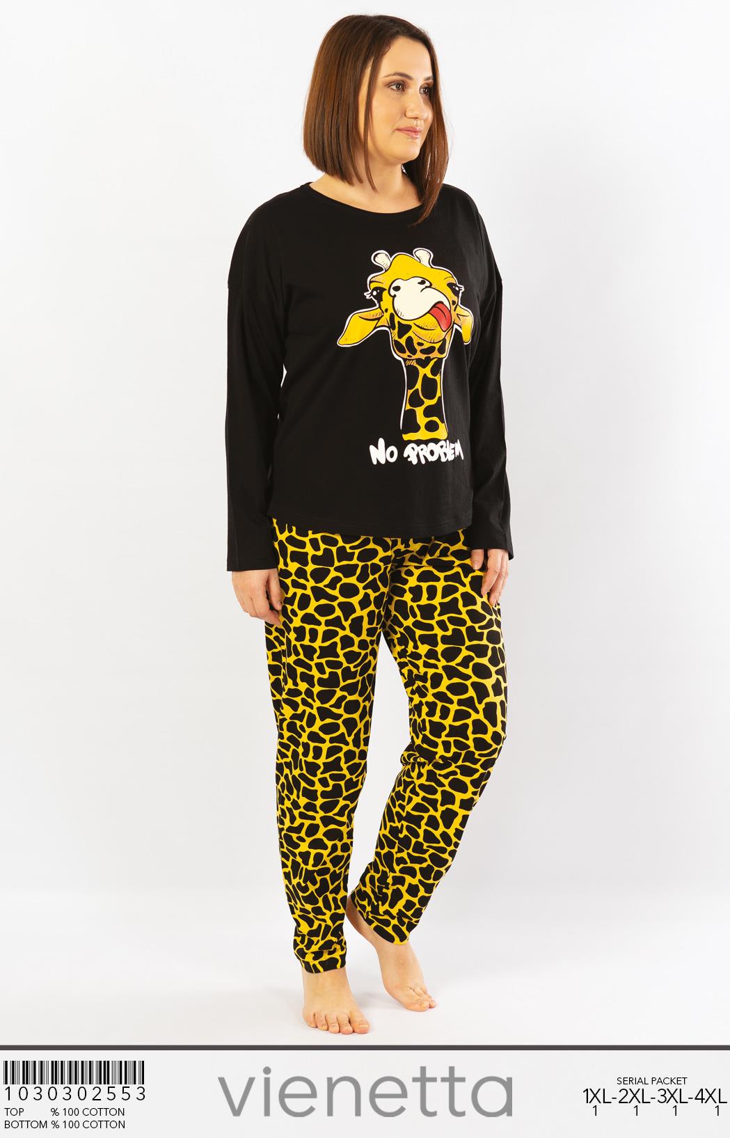 BAYAN P.SUPREM XXL O YAKA DUSUK OMUZLU UZUN KOL ETEGI OVAL DAR PACA PIJAMA TAKIM |