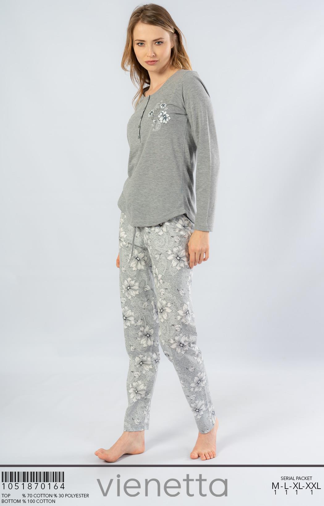 KADIN LYC WORTEKS O YAKA DUSUK OMUZLU UZUN KOL BELI PACASI BUZGULU PIJAMA TAKIM |