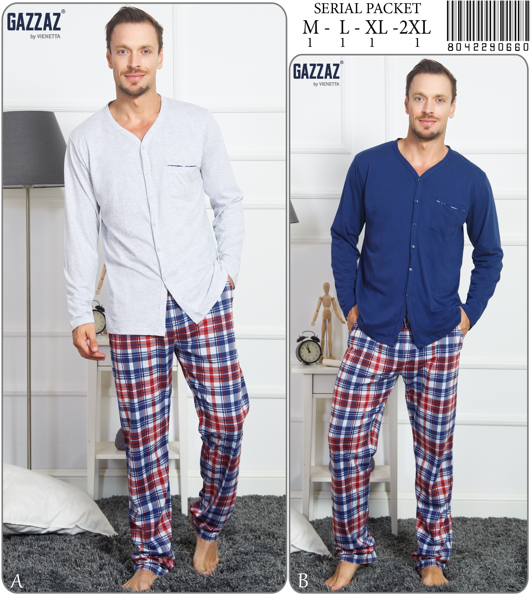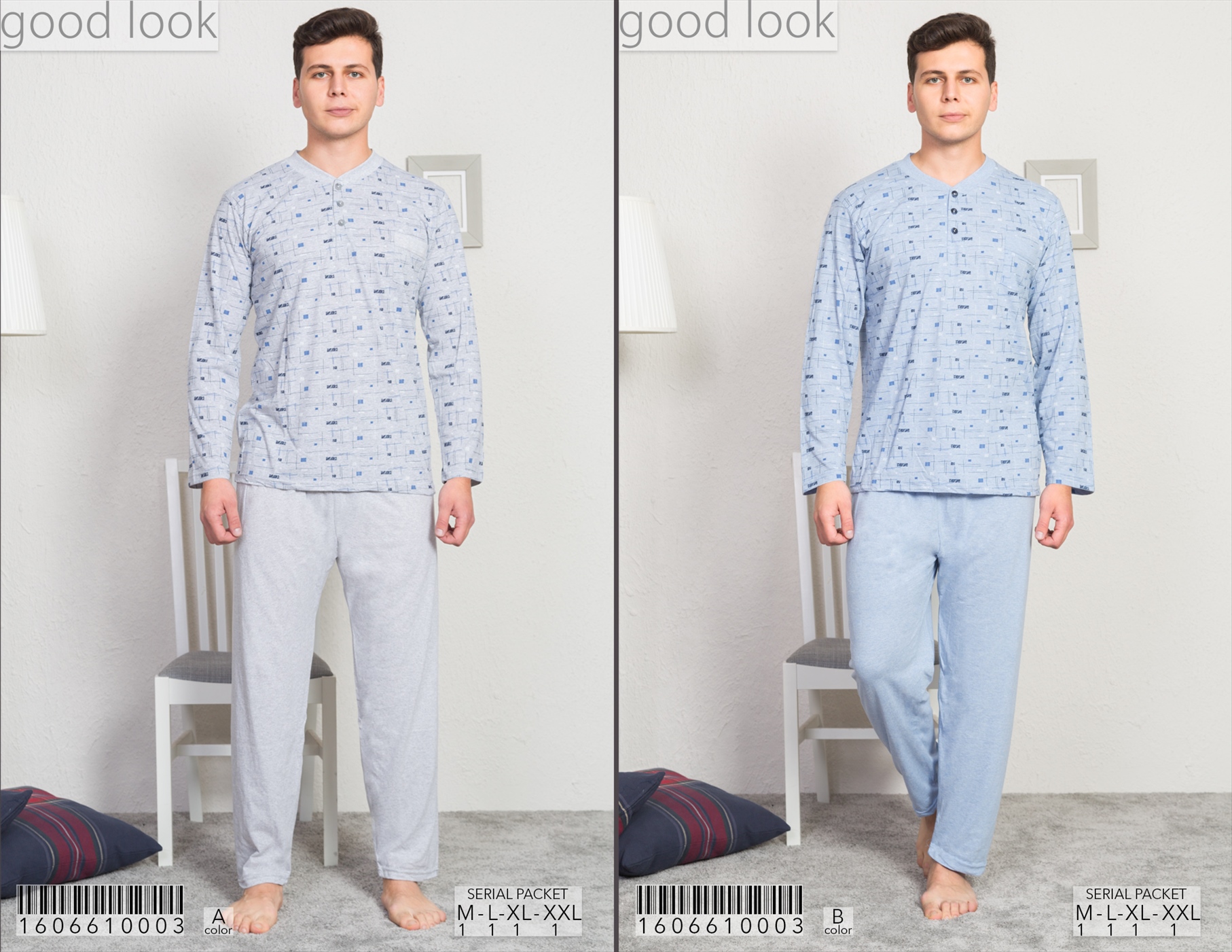 ERKEK UC DUGMELI PIJAMA TAKIM UZUN KOL |