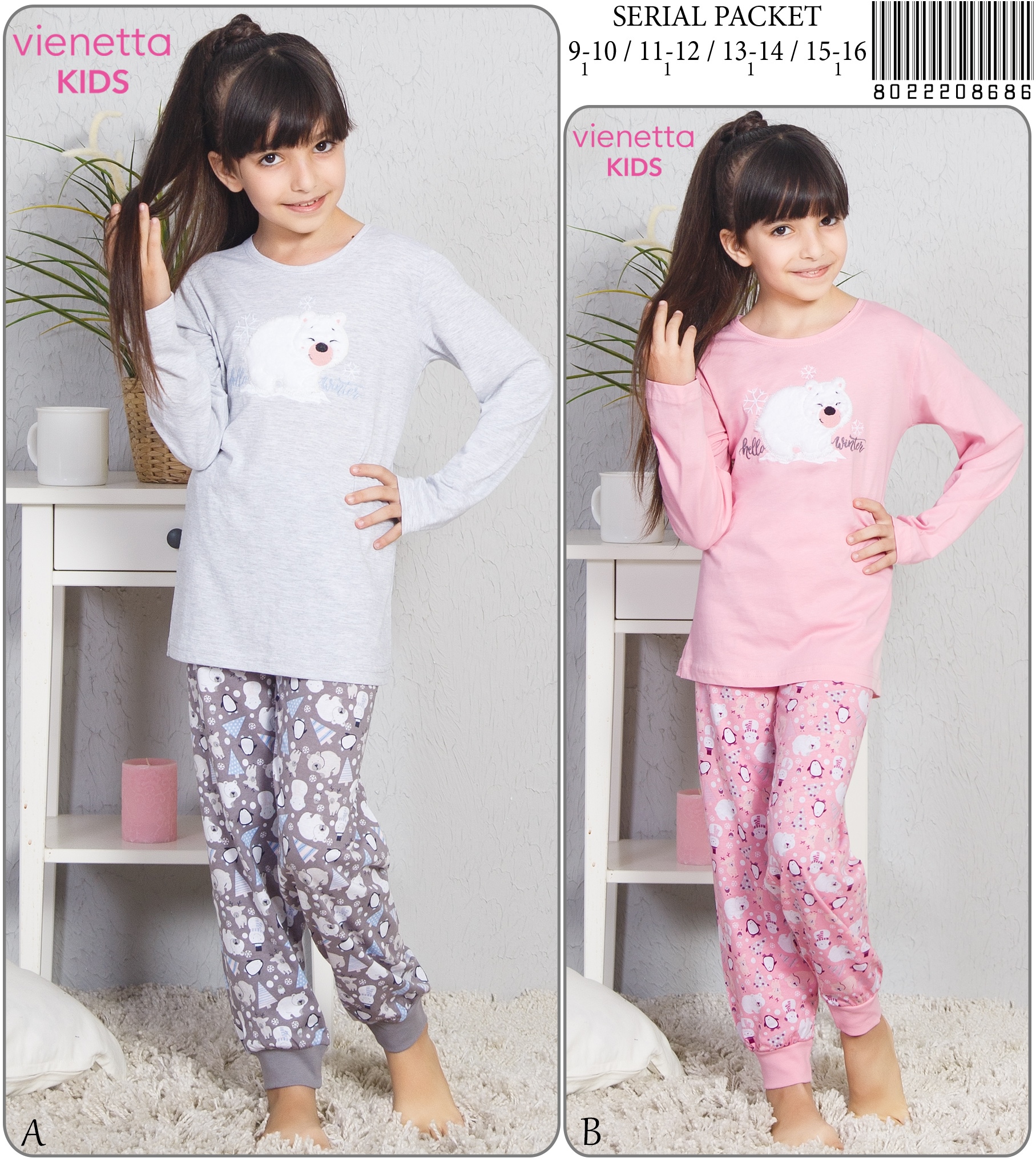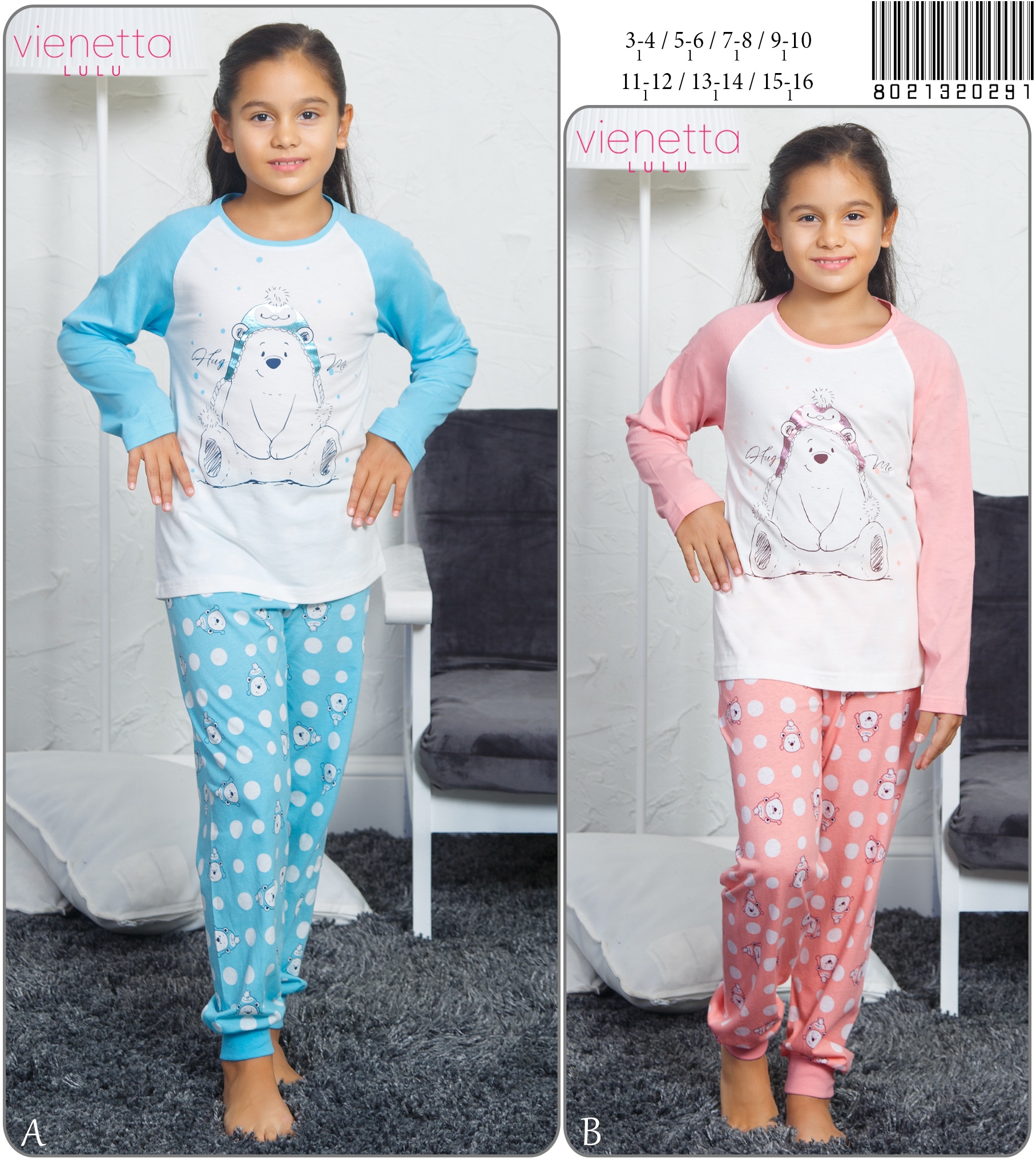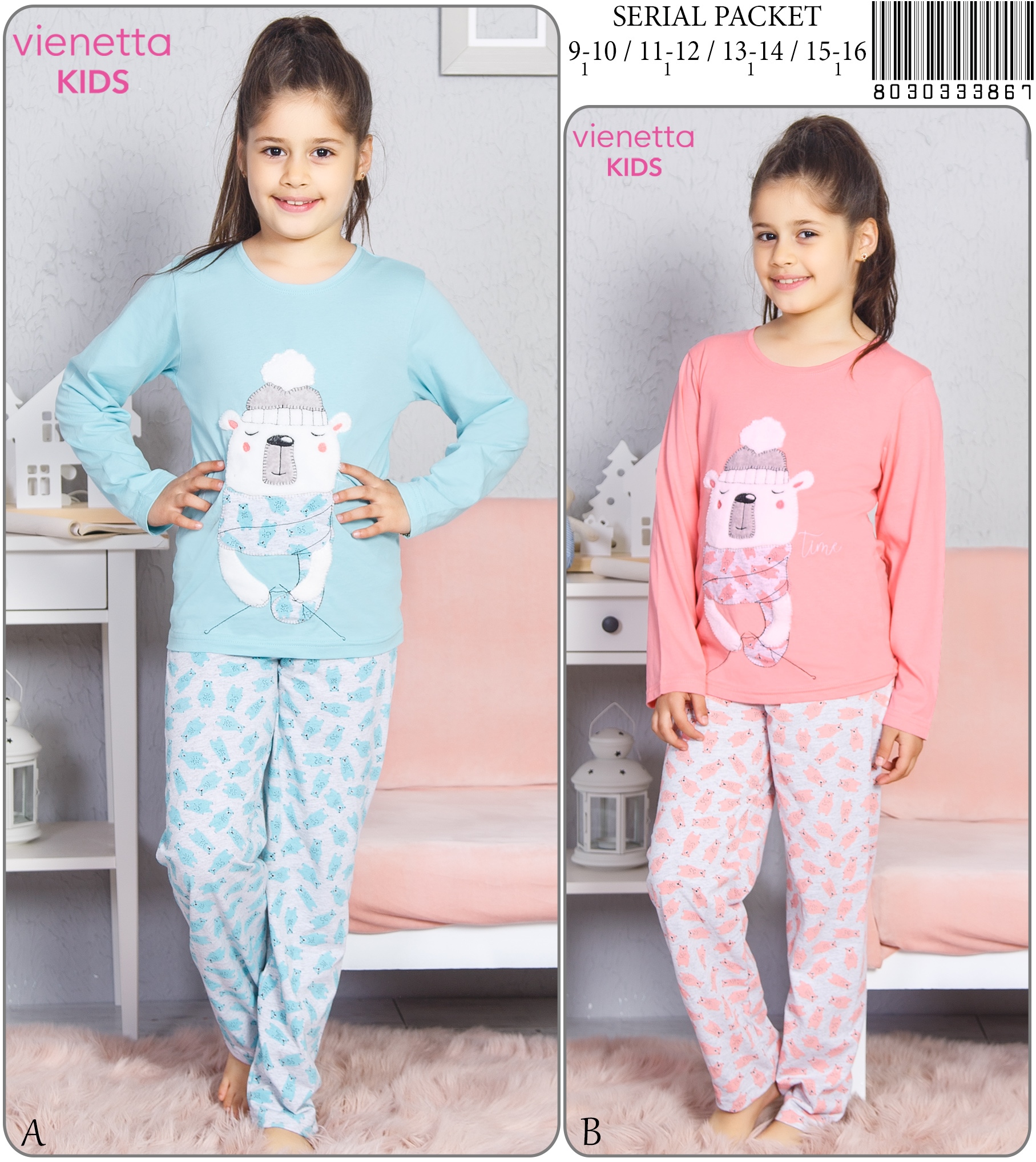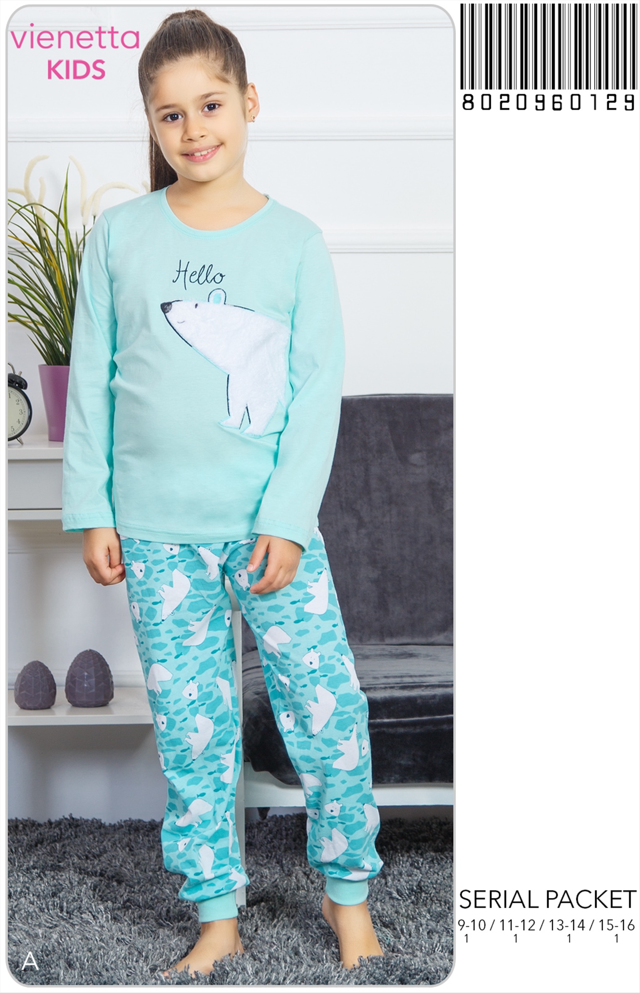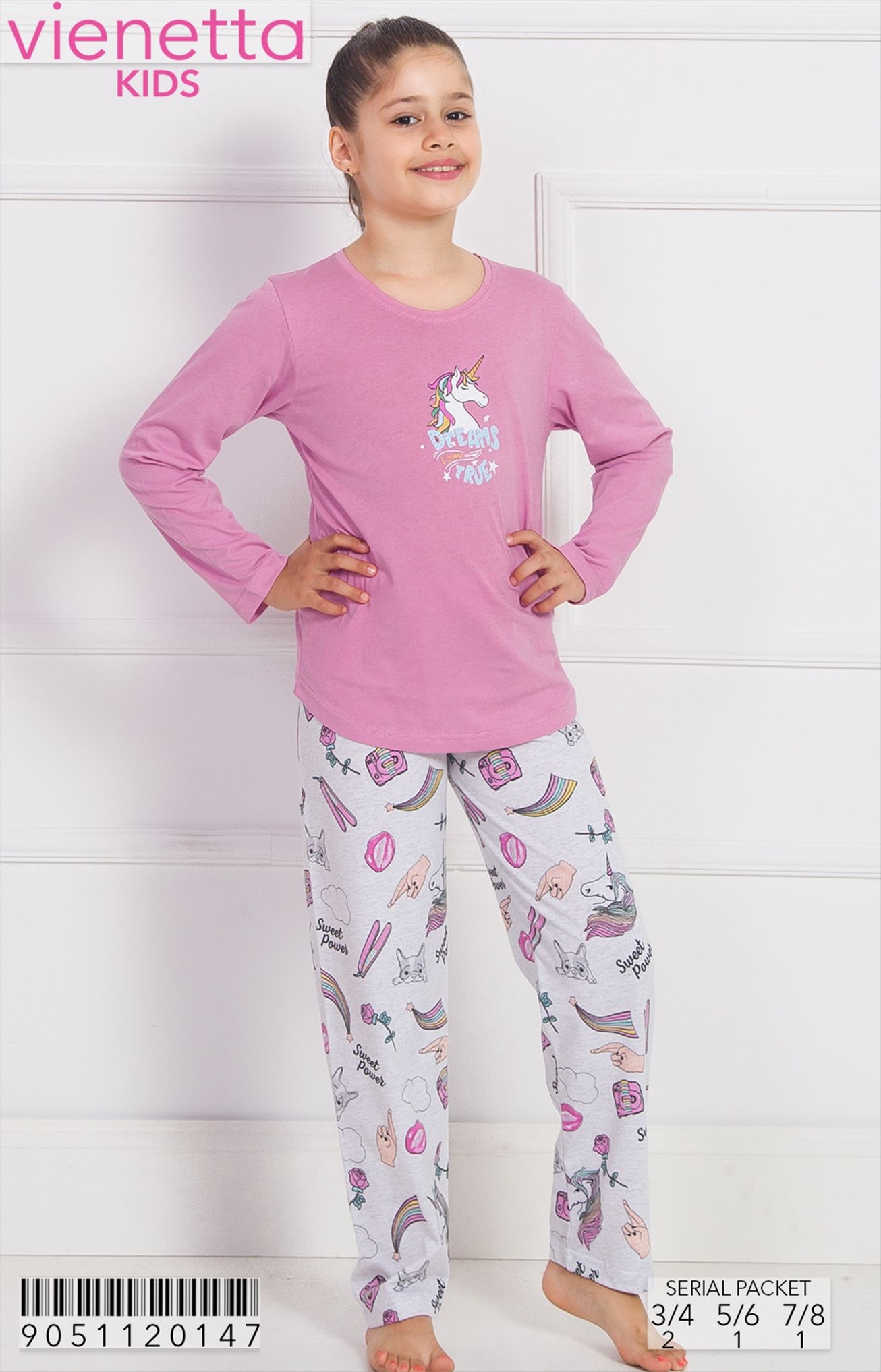 KIZ COCUK P.SUPREM O YAKA UZUN KOL ETEGI OVAL DAR PACA PIJAMA TK |