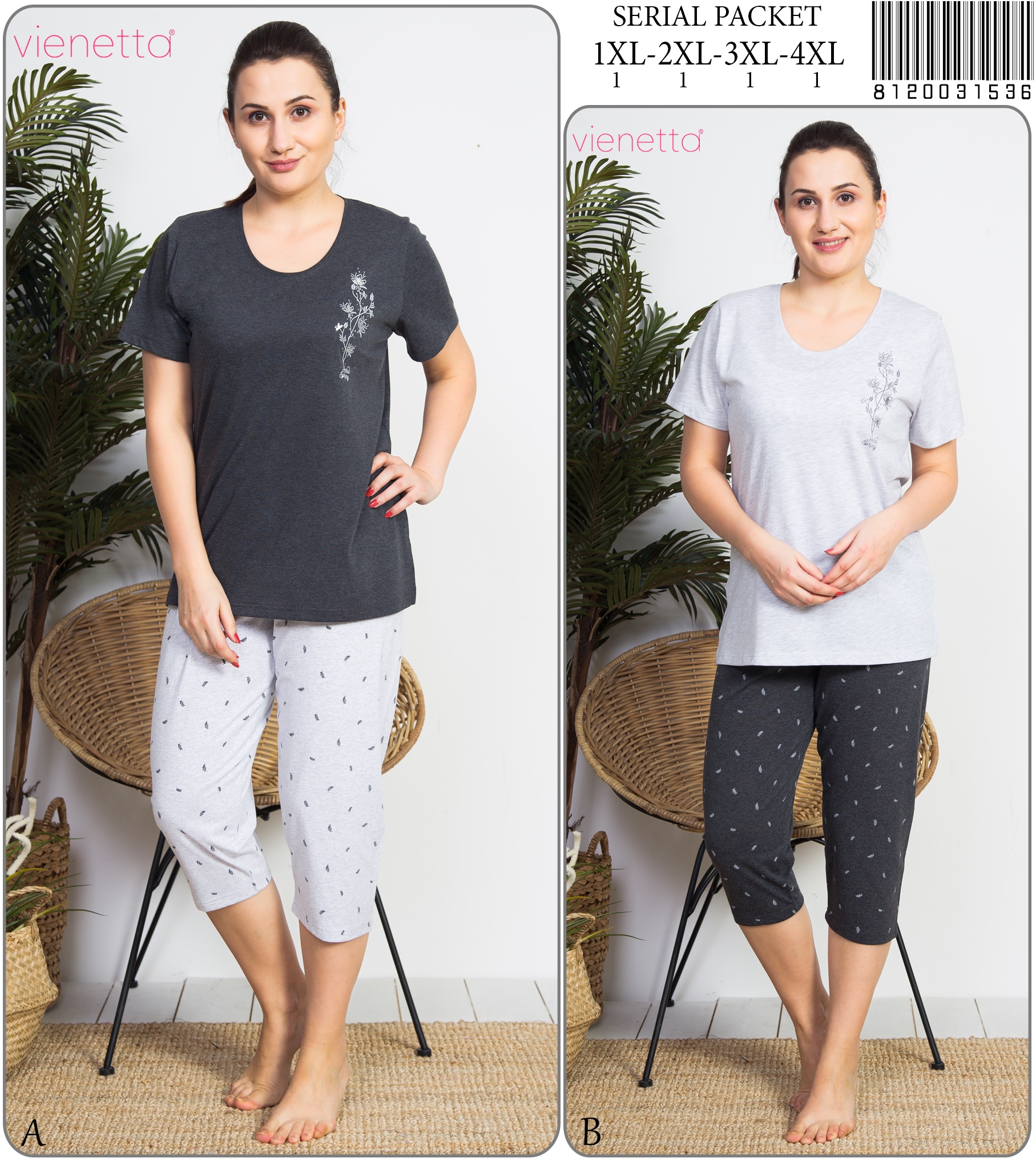 BAYAN P.SUPREM XXL O YAKA KISA KOL PIJAMA TAKIM |
