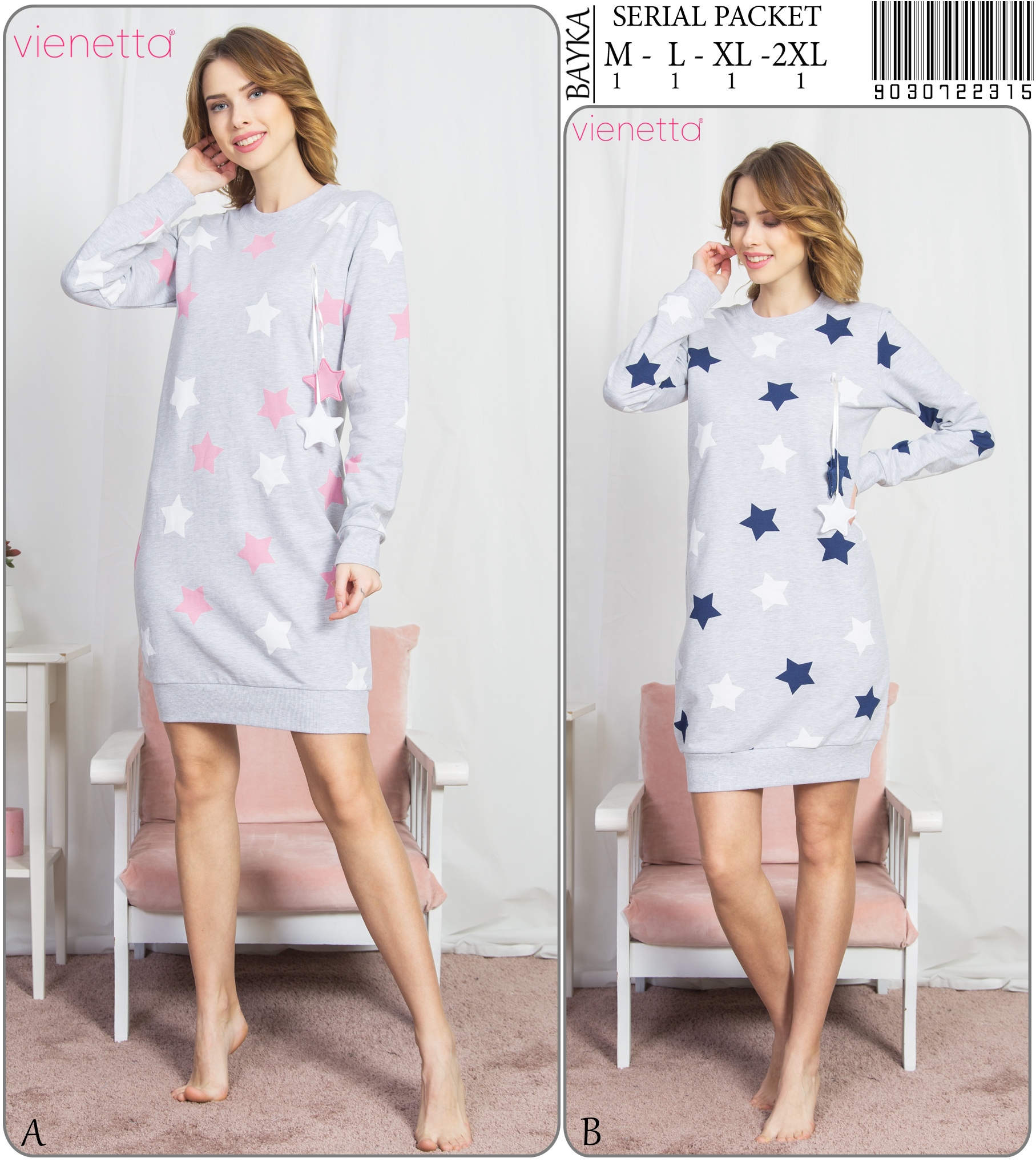 BAYAN 2IPLIK UZUN KOLLU TEK SABAHLIK |