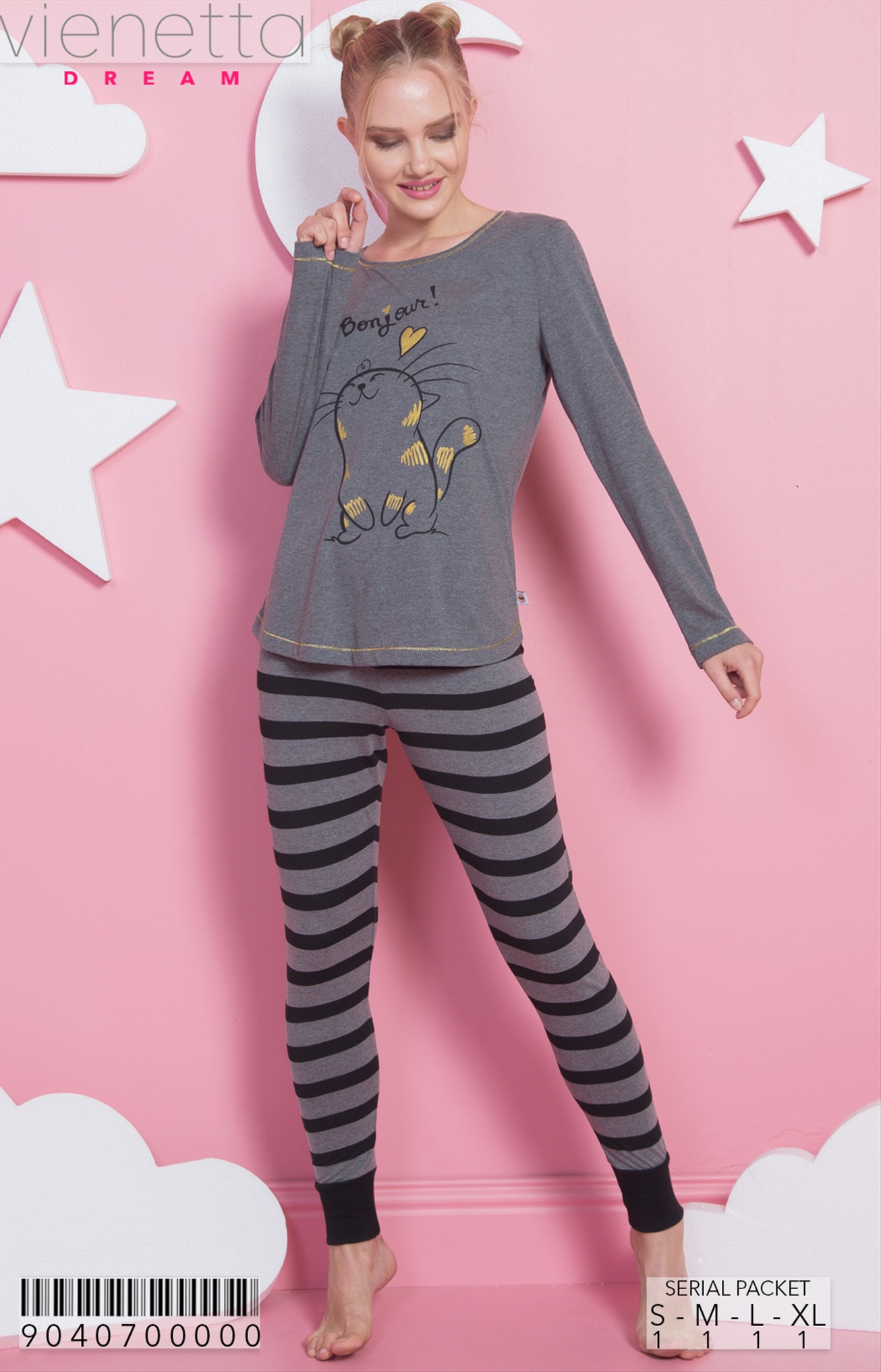 KADIN P.SUPREM KAYIK YAKA DUSUK OMUZLU UZUN KOL ETEGI OVAL PIJAMA TAKIM |