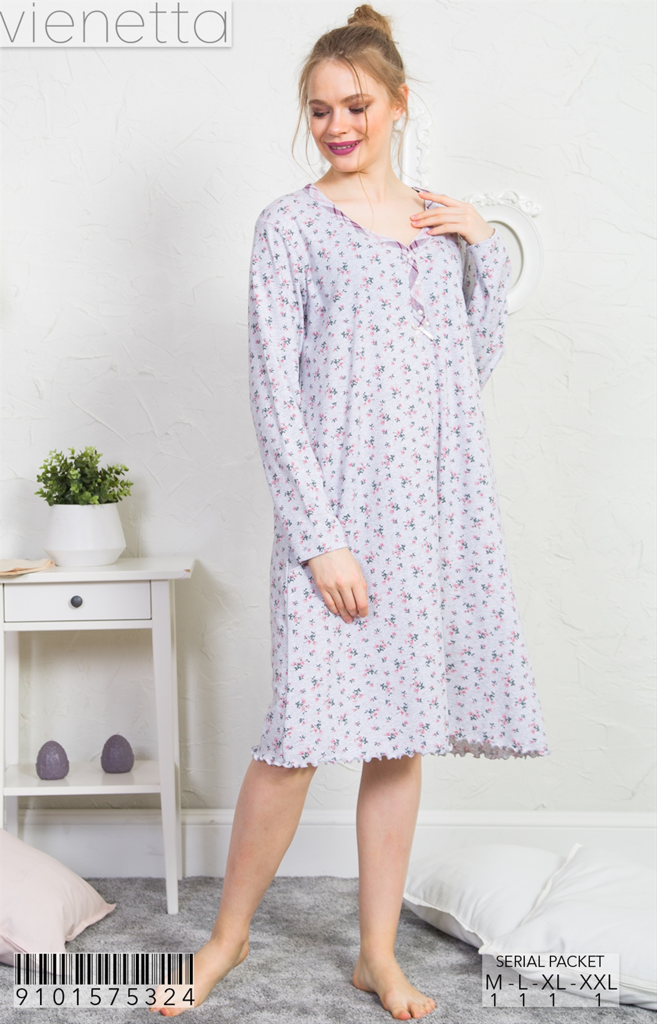 KADIN P.SUPREM XXL 3/4 KOL FERMUARLI CEPLI EV ELBISESI |