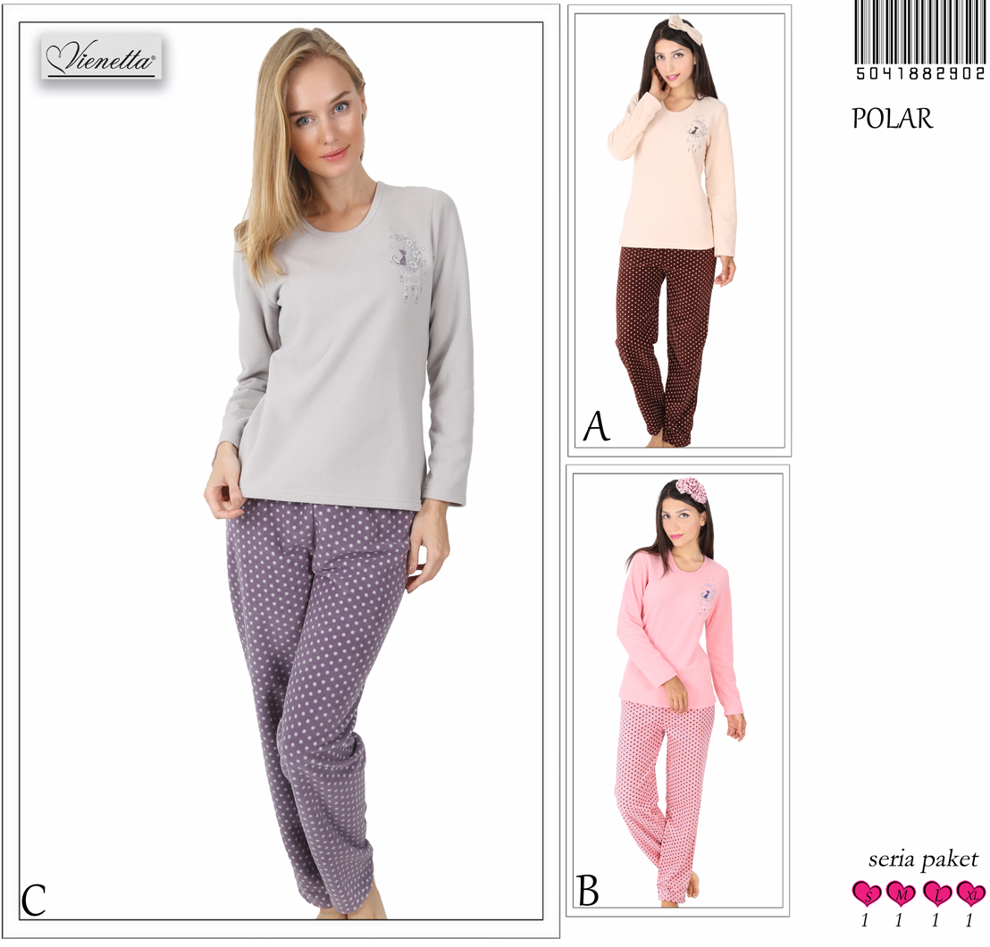 BAYAN POLAR O YAKA PİJAMA TAKIMI(PARÇA BASKILI) |