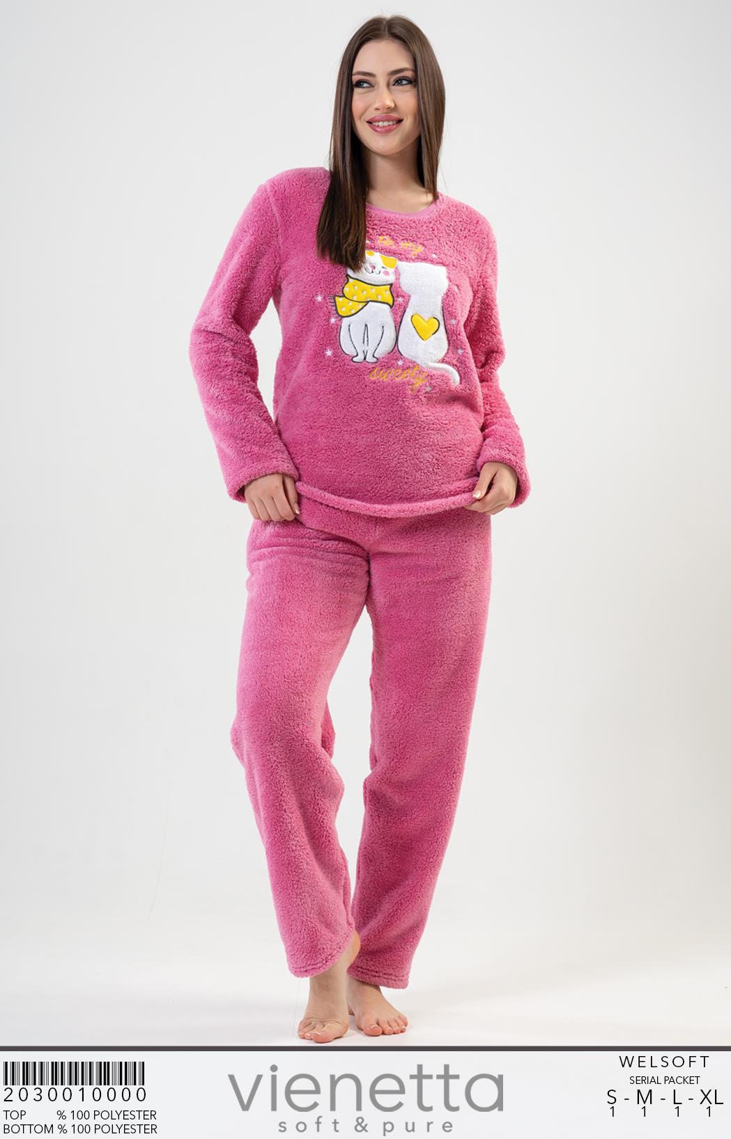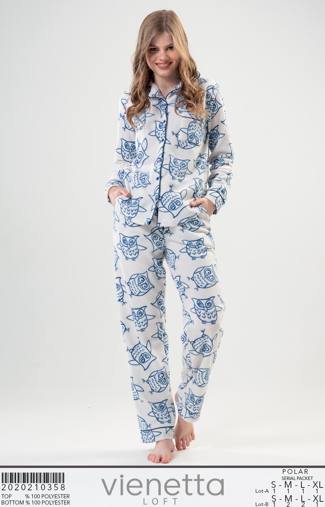 BAYAN POLAR TAMAMI DUGMELI UZUN KOL CEPLI PIJAMA TAKIM |