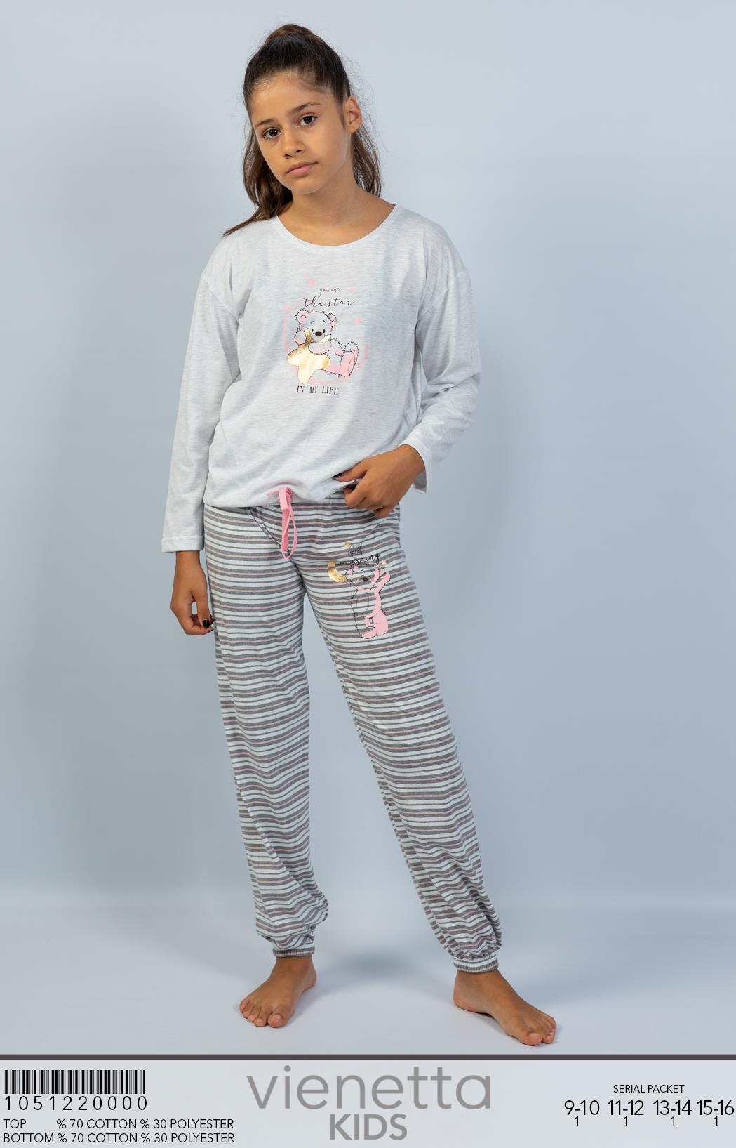 KIZ COCUK P.SUPREM KAYIK YAKA DUSUK OMUZLU UZUN KOL BELI PACASI BUZGULU PIJAMA TAKIM |