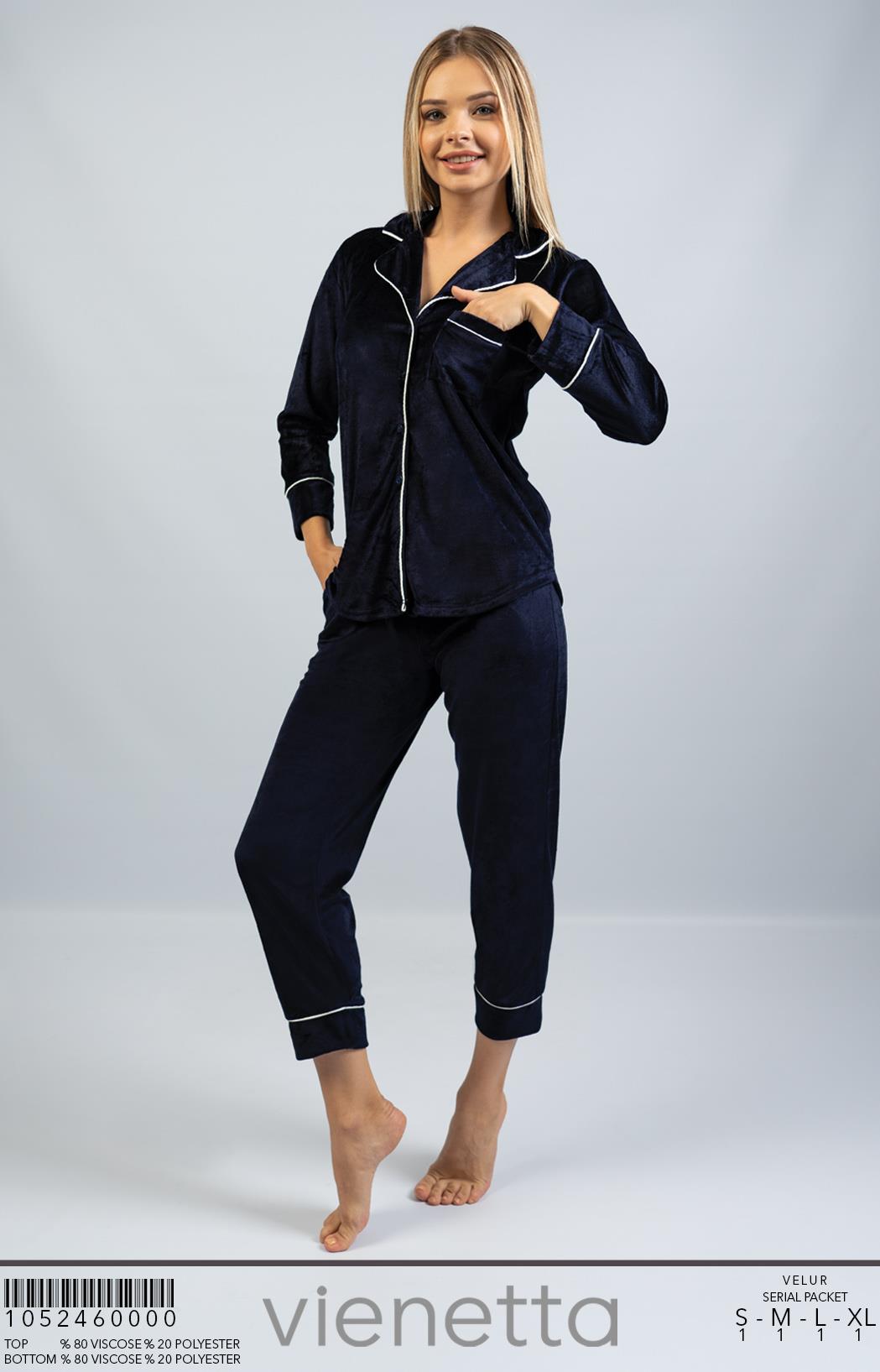 BAYAN VISCON KADIFE GOMLEK YAKA 7/4 KOL 7/4 PACA CEPLI PIJAMA TAKIM |