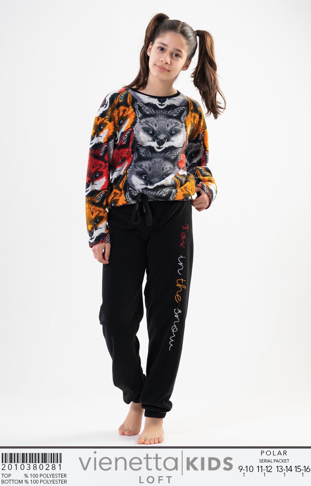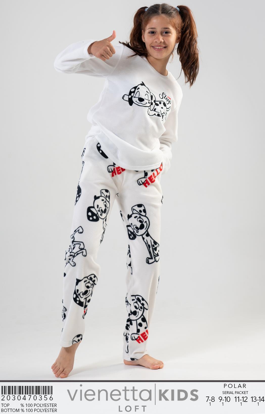 KIZ COCUK POLAR O YAKA DUSUK OMUZLU UZUN KOL BELI PACASI BUZGULU PIJAMA TAKIM |