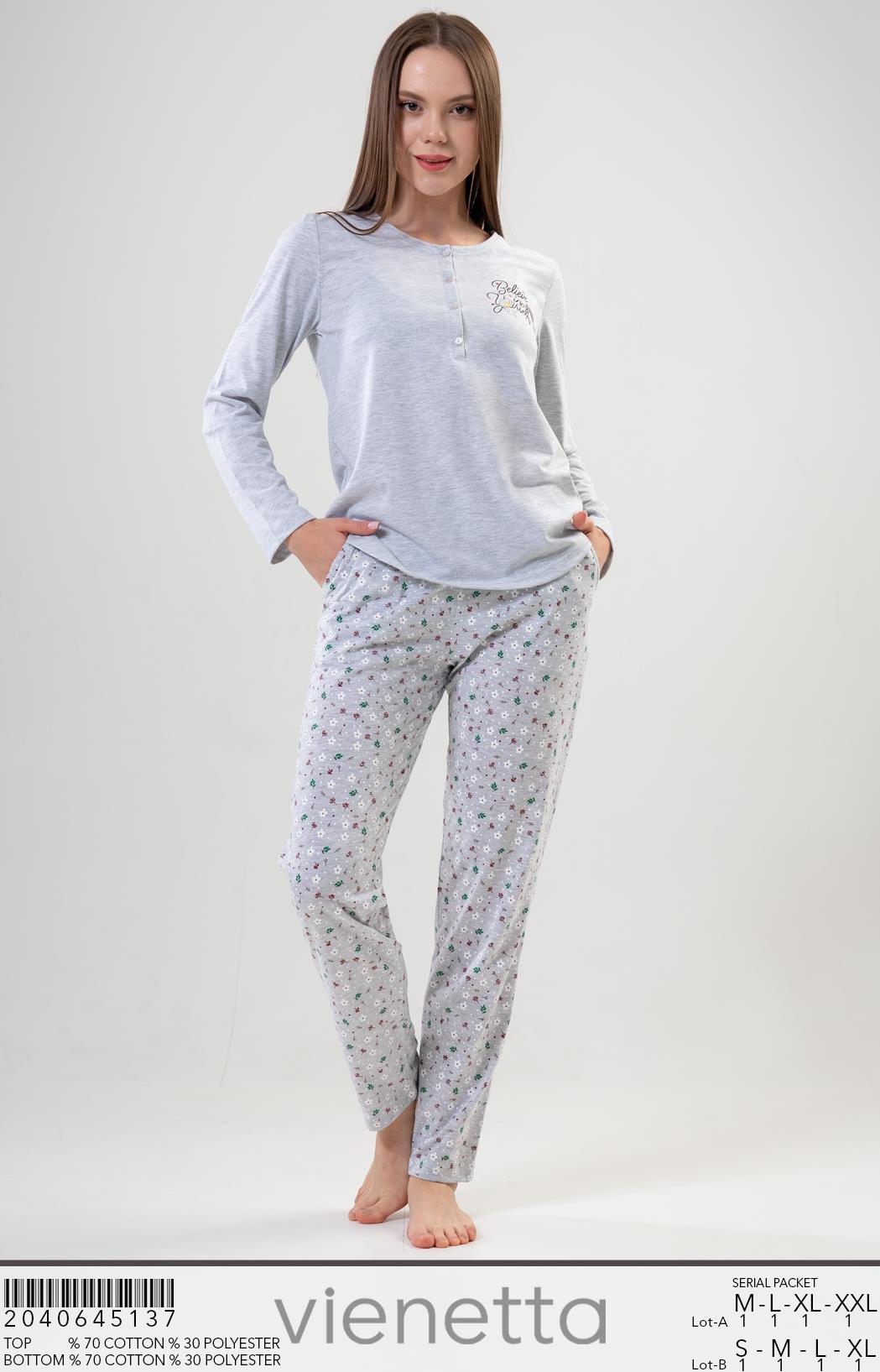 KADIN P.SUPREM PATLI UZUN KOL ETEGI OVAL CEPLI PIJAMA TAKIM |