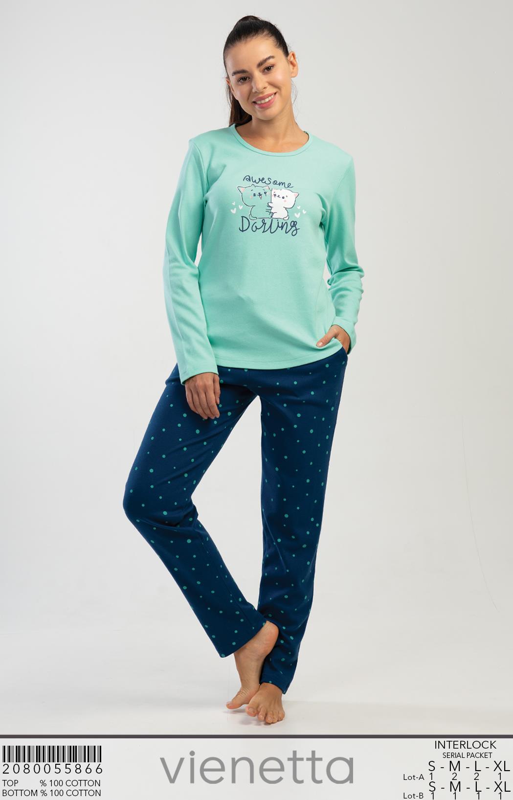 KADIN INTERLOK O YAKA UZUN KOL ETEGI OVAL CEPLI PIJAMA TAKIM |