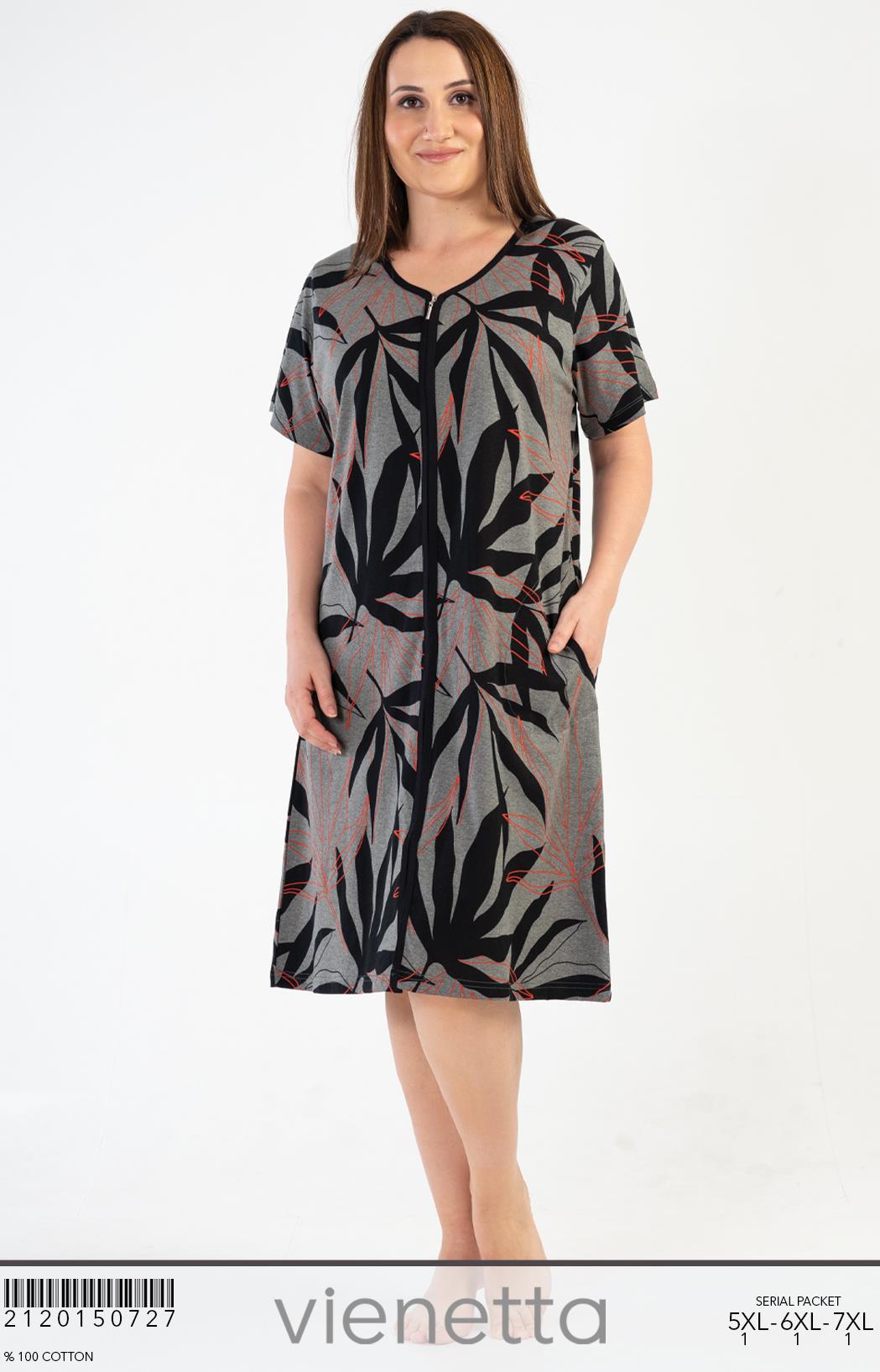 KADIN P.SUPREM XXL BATTAL KISA KOL FERMUARLI CEPLI EV ELBISESI |
