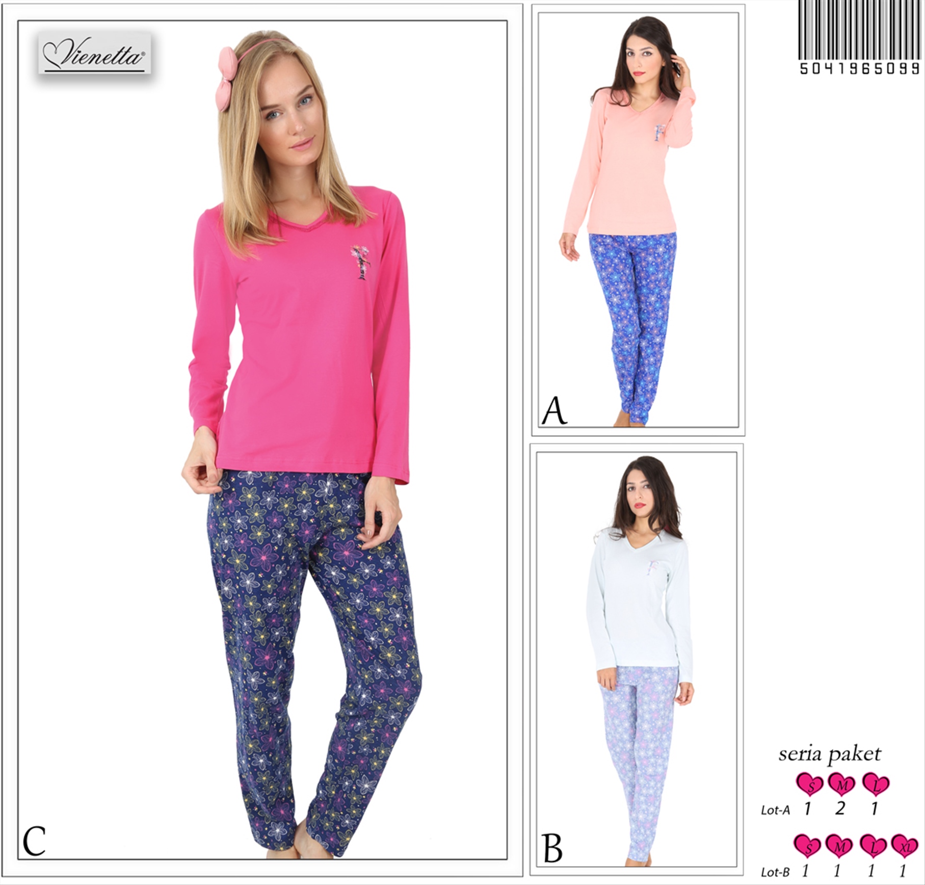 BAYAN P.SÜPREM V YAKA(YAKA BİYE DANTEL) UZN KOL DAR PAÇA PİJMA TK 5041965099 C A/ 1-2-1 6,50 $ 25,00 650,00 $