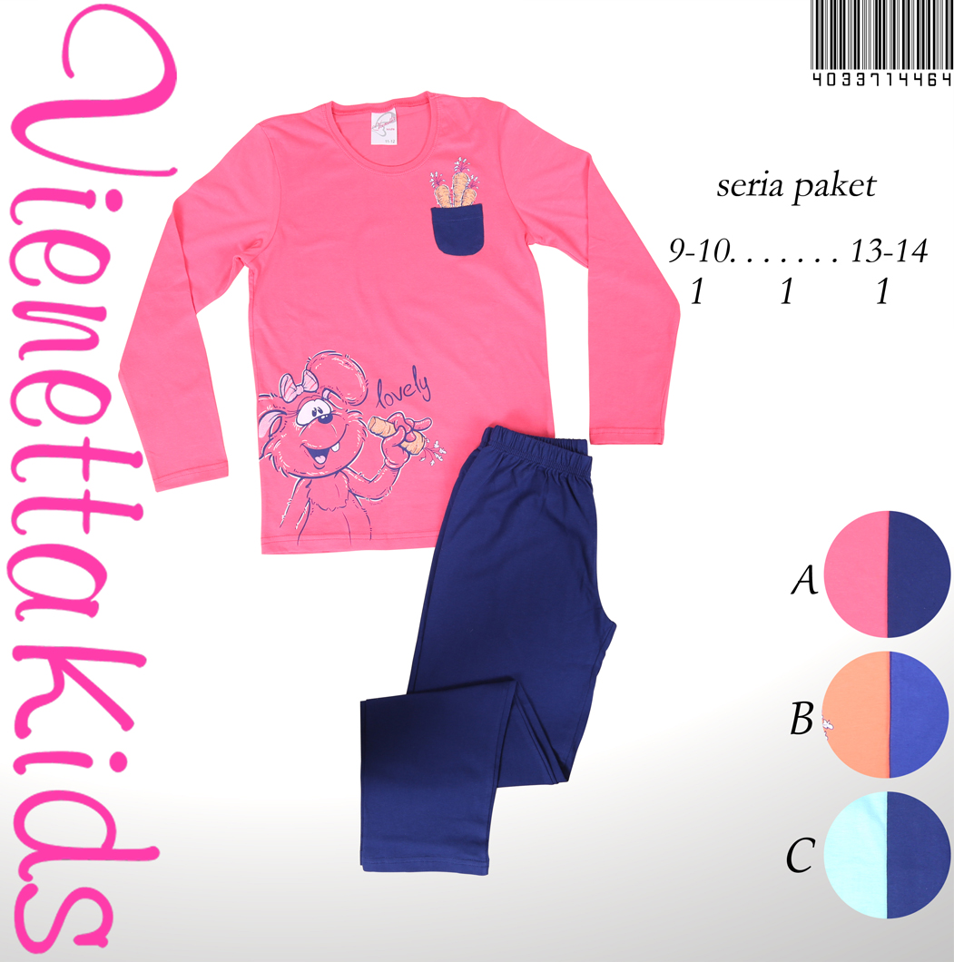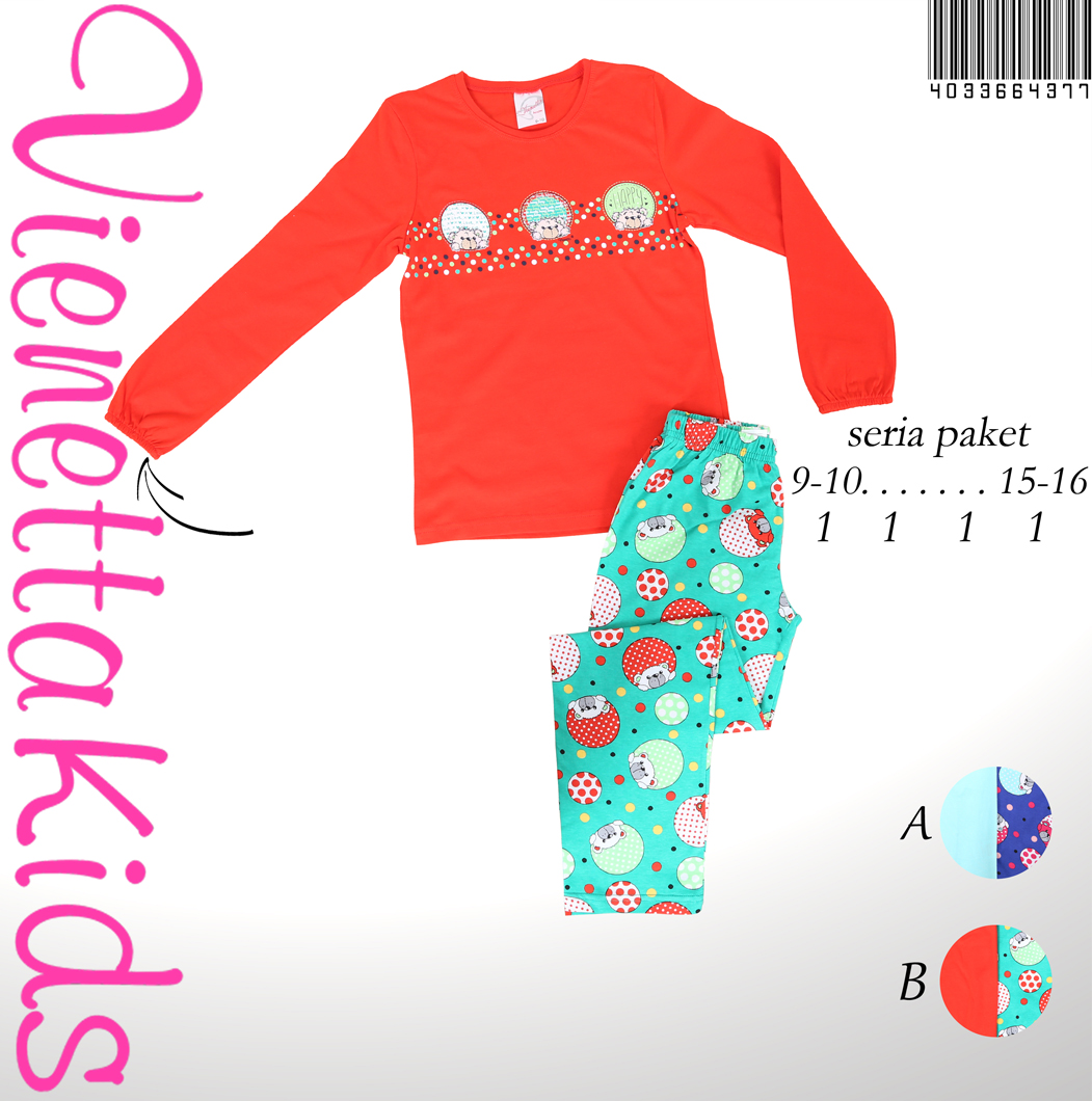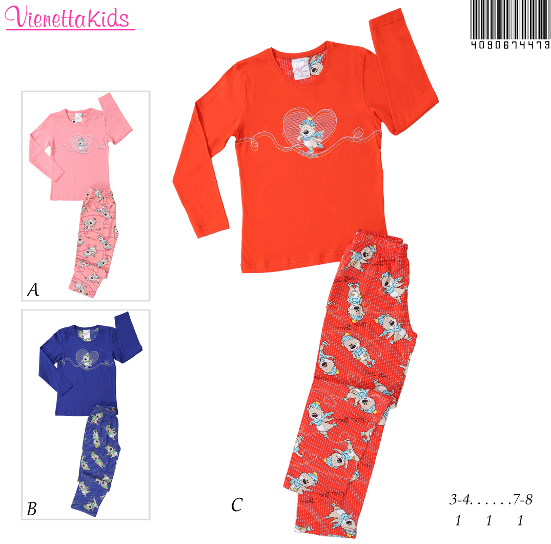KIZ ÇOCUK PENYE SÜPREM (AG)O YAKALI(DİBARI) PİJAMA TAKIMI PAÇA MANŞETLİ (ÇİFT BASKI1/2-7/8 YAŞLARI |